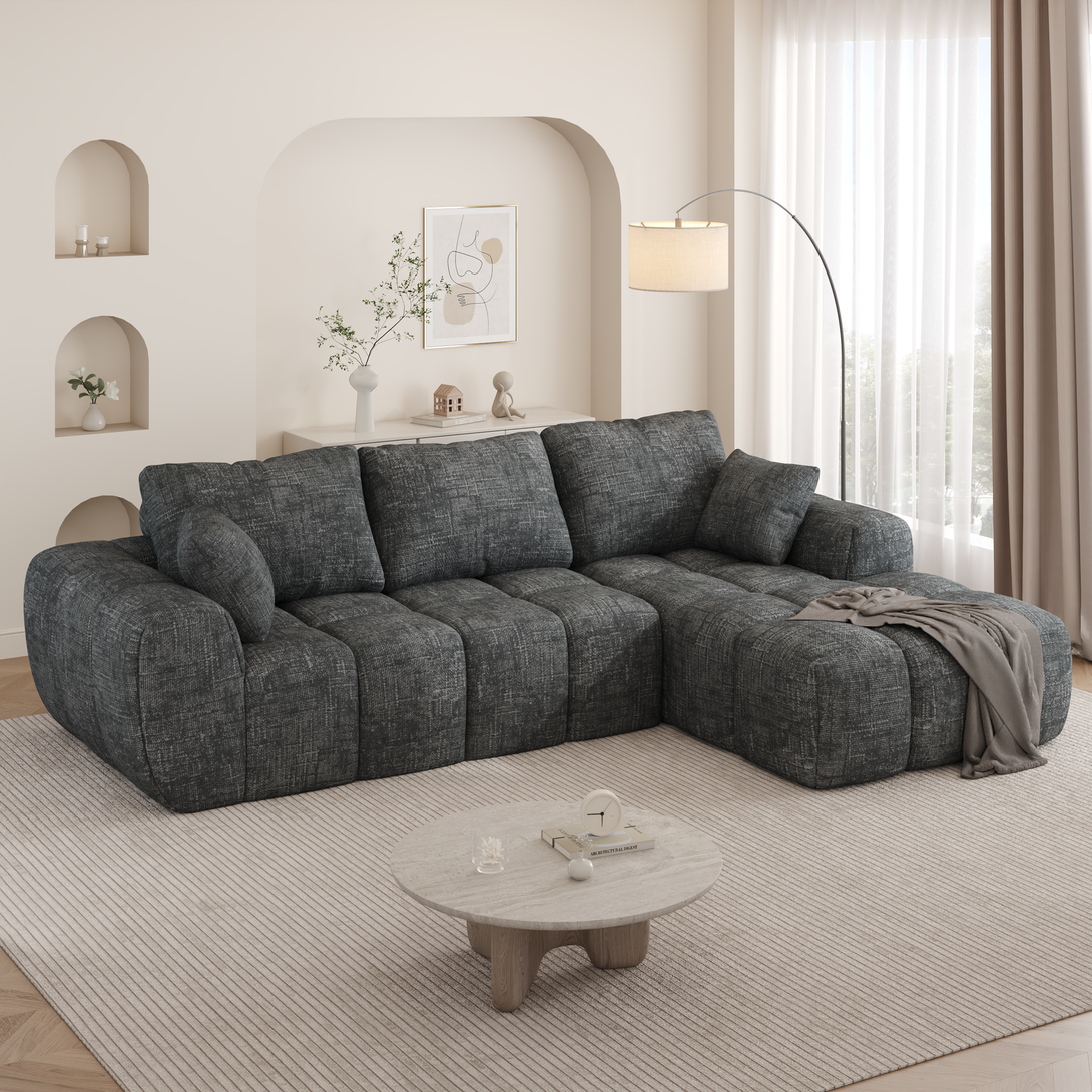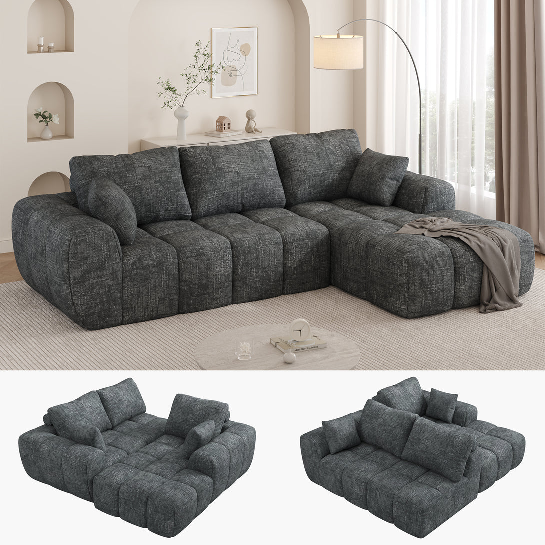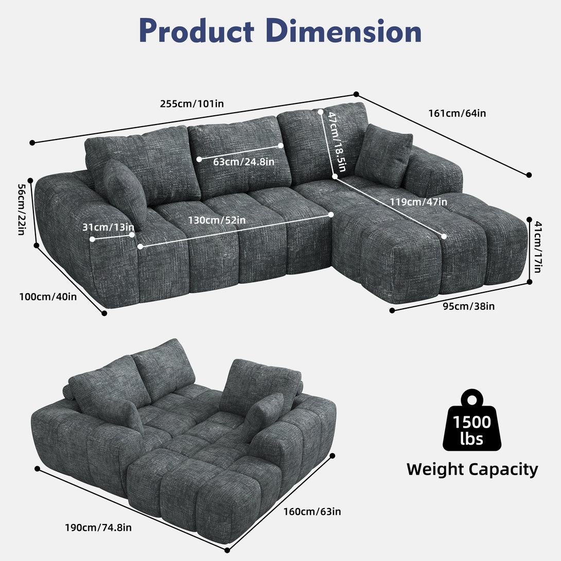 101" Sectional Sofa with Back Cushion,Modern L-Shaped Modular Cloud Couch,Unique Chenille Fabric Couches and Sofas for Living Room Bedroom,Compression Sofa No Assembly Required(Deep Gray)