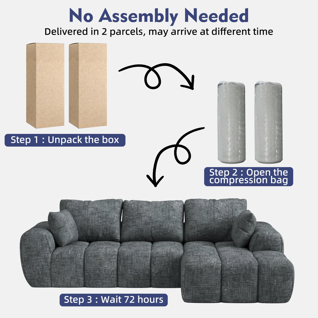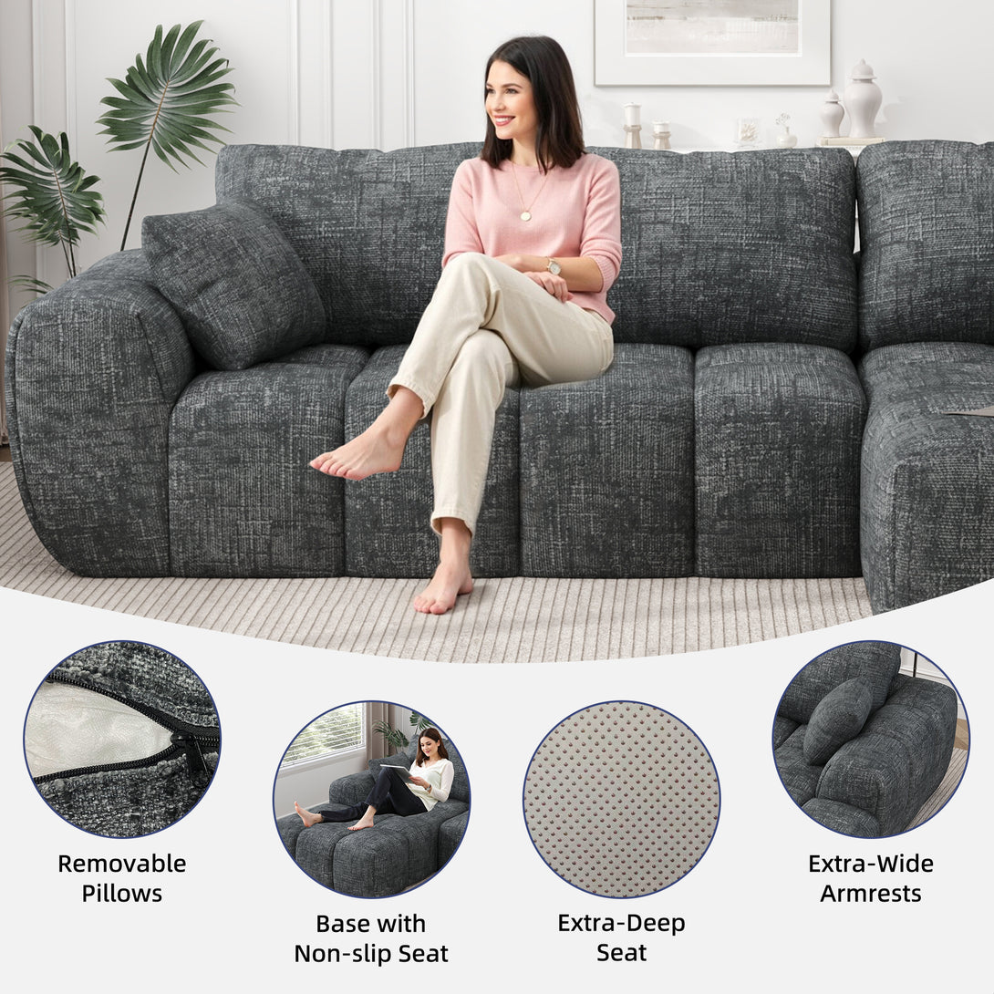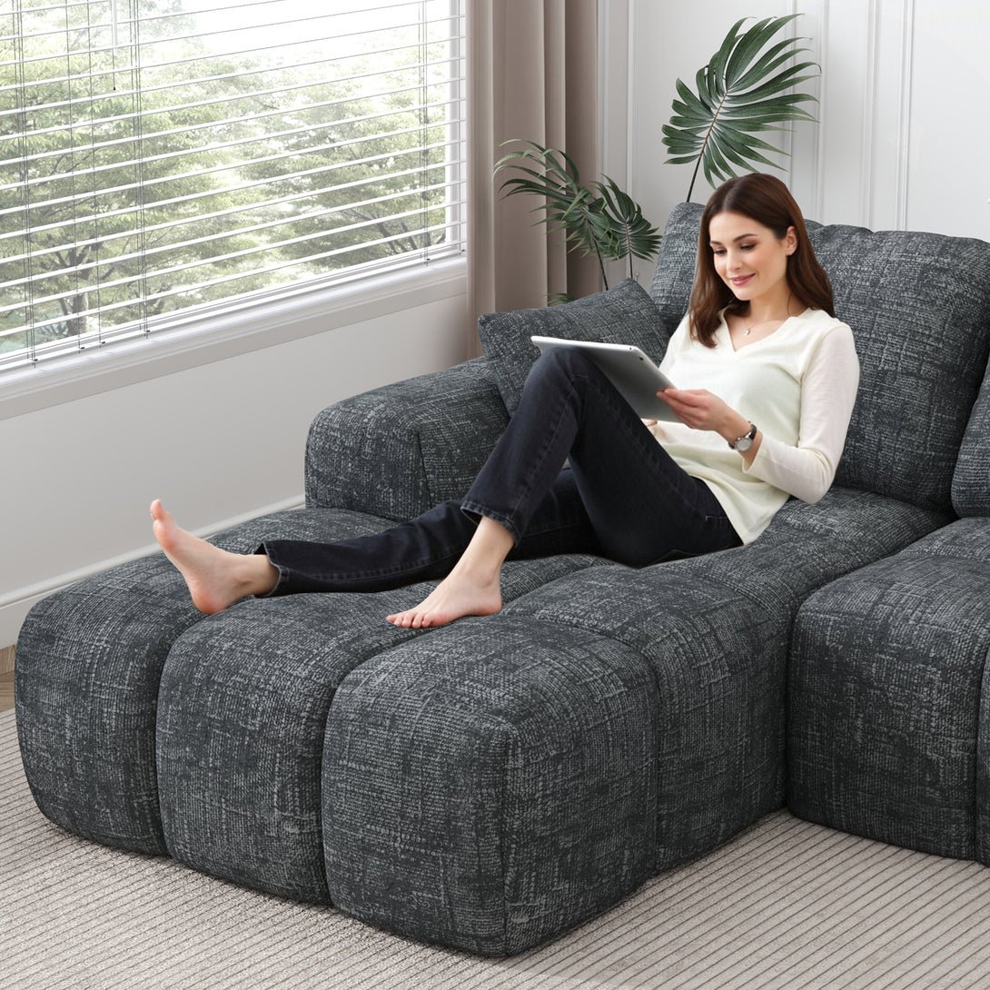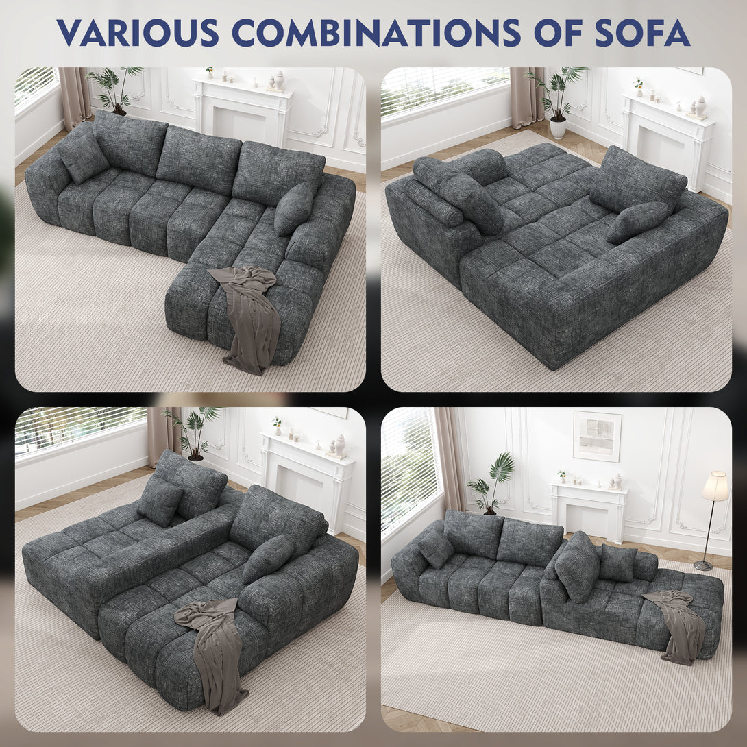 101" Sectional Sofa with Back Cushion,Modern L-Shaped Modular Cloud Couch,Unique Chenille Fabric Couches and Sofas for Living Room Bedroom,Compression Sofa No Assembly Required(Deep Gray)