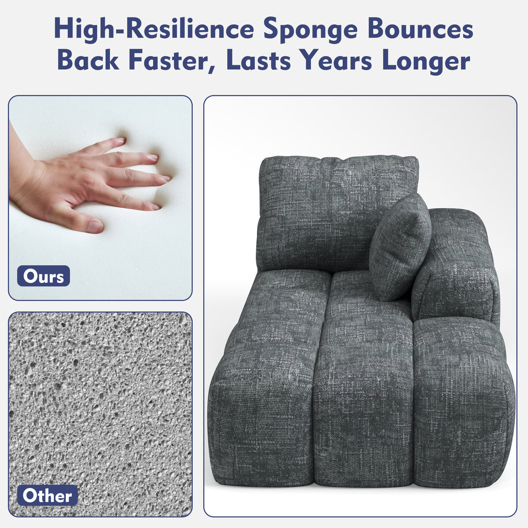Our sofa’s high-resilience sponge bounces back faster and lasts years longer than standard foams, ensuring your sofa stays plush and comfortable for years to come.