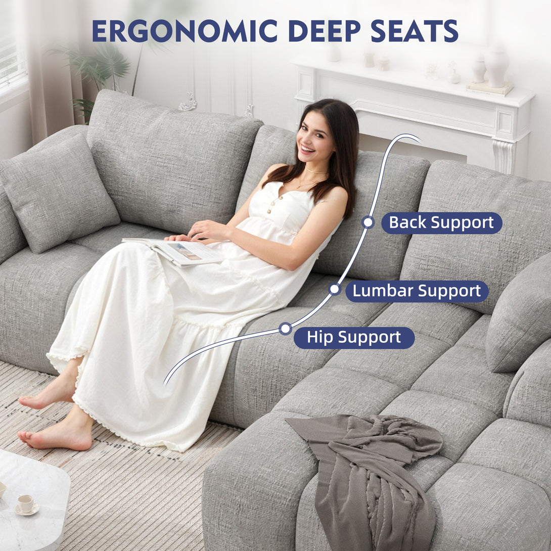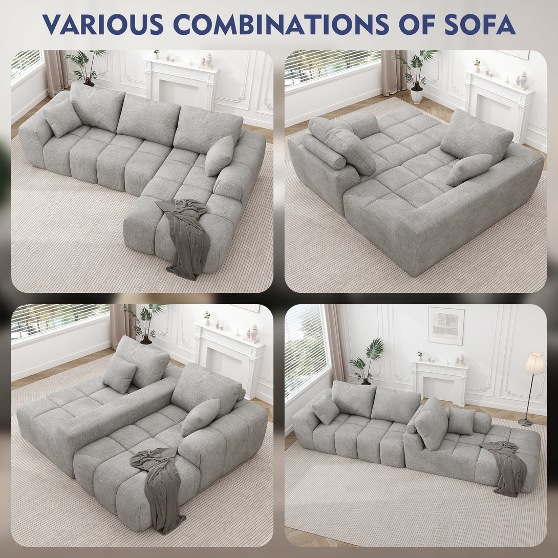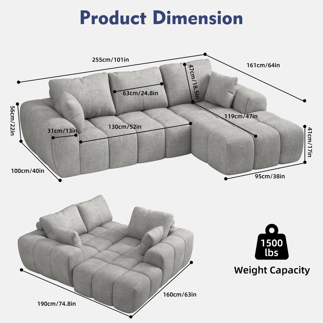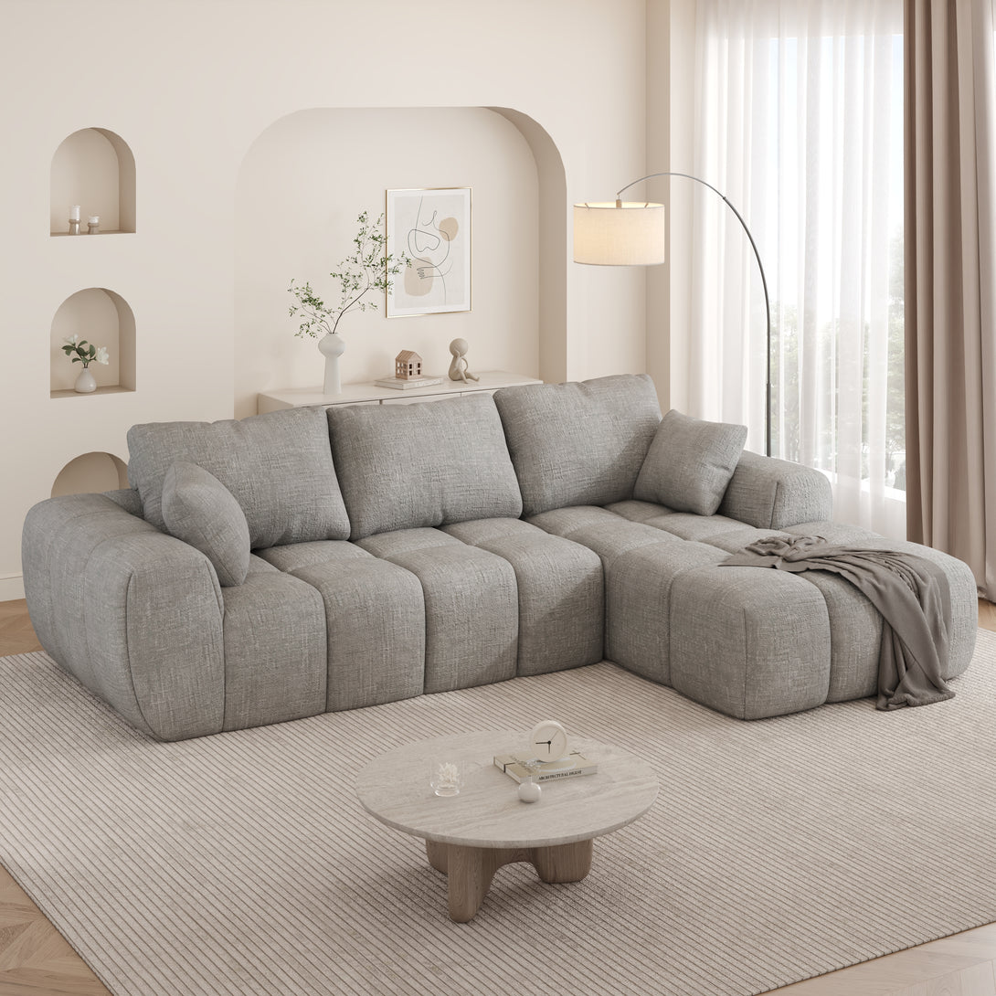 101" Sectional Sofa with Back Cushion,Modern L-Shaped Modular Cloud Couch,Unique Chenille Fabric Couches and Sofas for Living Room Bedroom,Compression Sofa No Assembly Required(Light Gray)