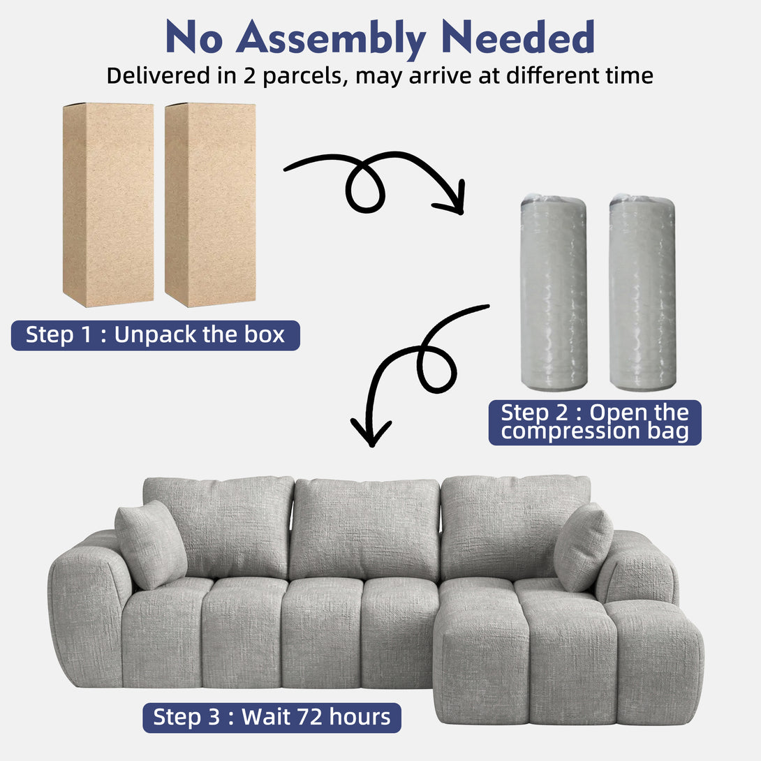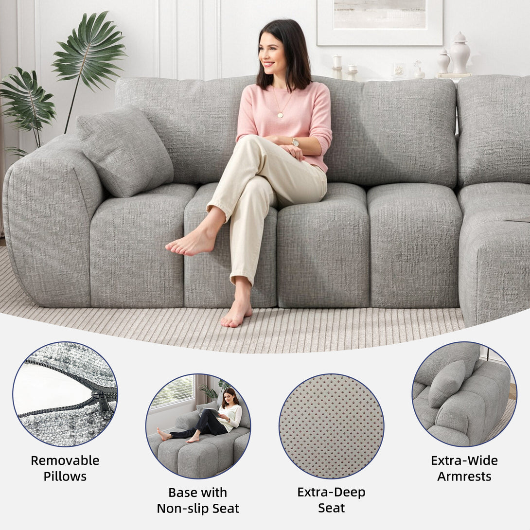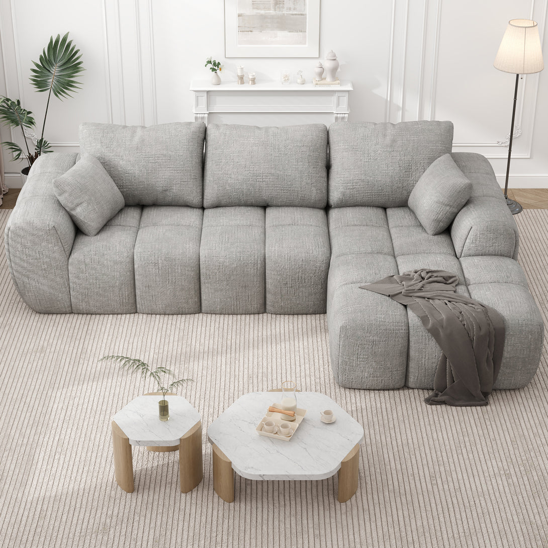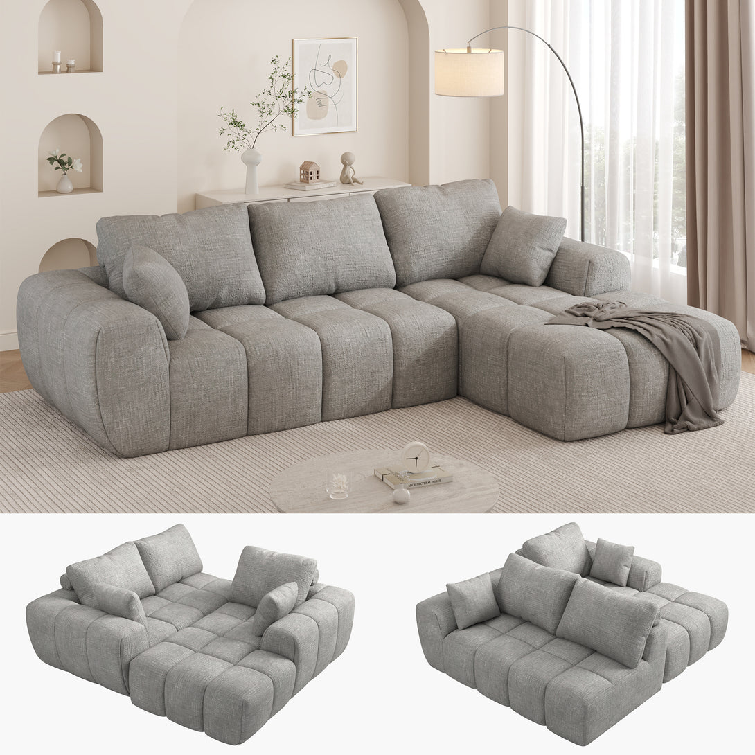 101" Sectional Sofa with Back Cushion,Modern L-Shaped Modular Cloud Couch,Unique Chenille Fabric Couches and Sofas for Living Room Bedroom,Compression Sofa No Assembly Required(Light Gray)