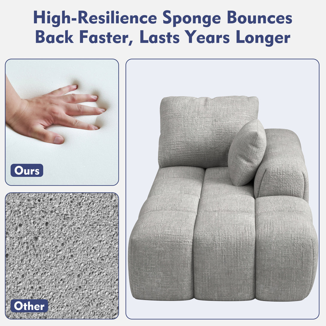 Our sofa’s high-resilience sponge bounces back faster and lasts years longer than standard foams, ensuring your sofa stays plush and comfortable for years to come.
