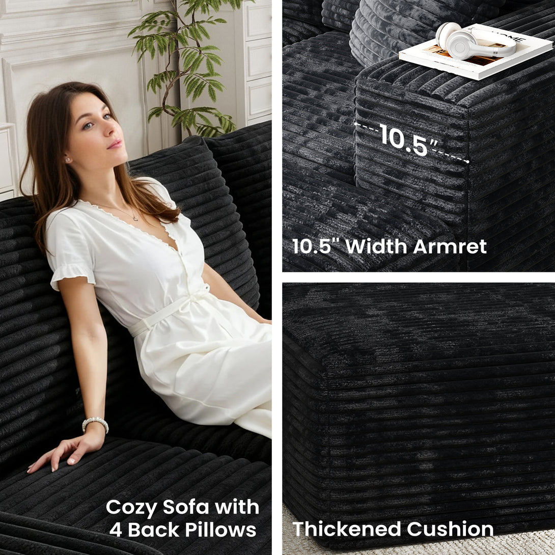 - Cloud-Like Comfort: Experience unparalleled comfort with our 136-inch cloud combination sofa. The plush velvet corduroy fabric wraps you in cloud-like softness, offering a luxurious, gentle touch that elevates your relaxation.
