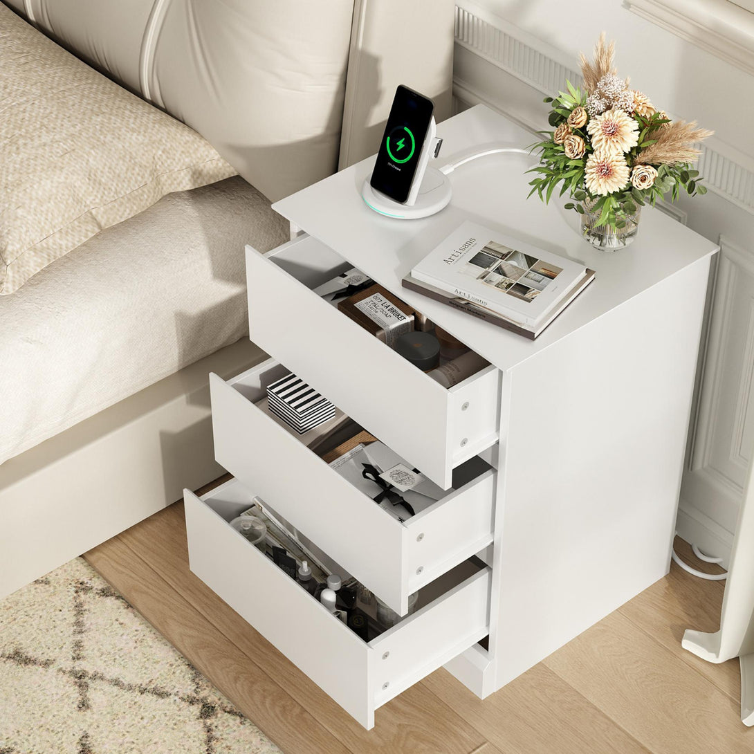 3 Drawers Nightstand with Charging Station, Bedside Table with Storage for Living Room Bedroom