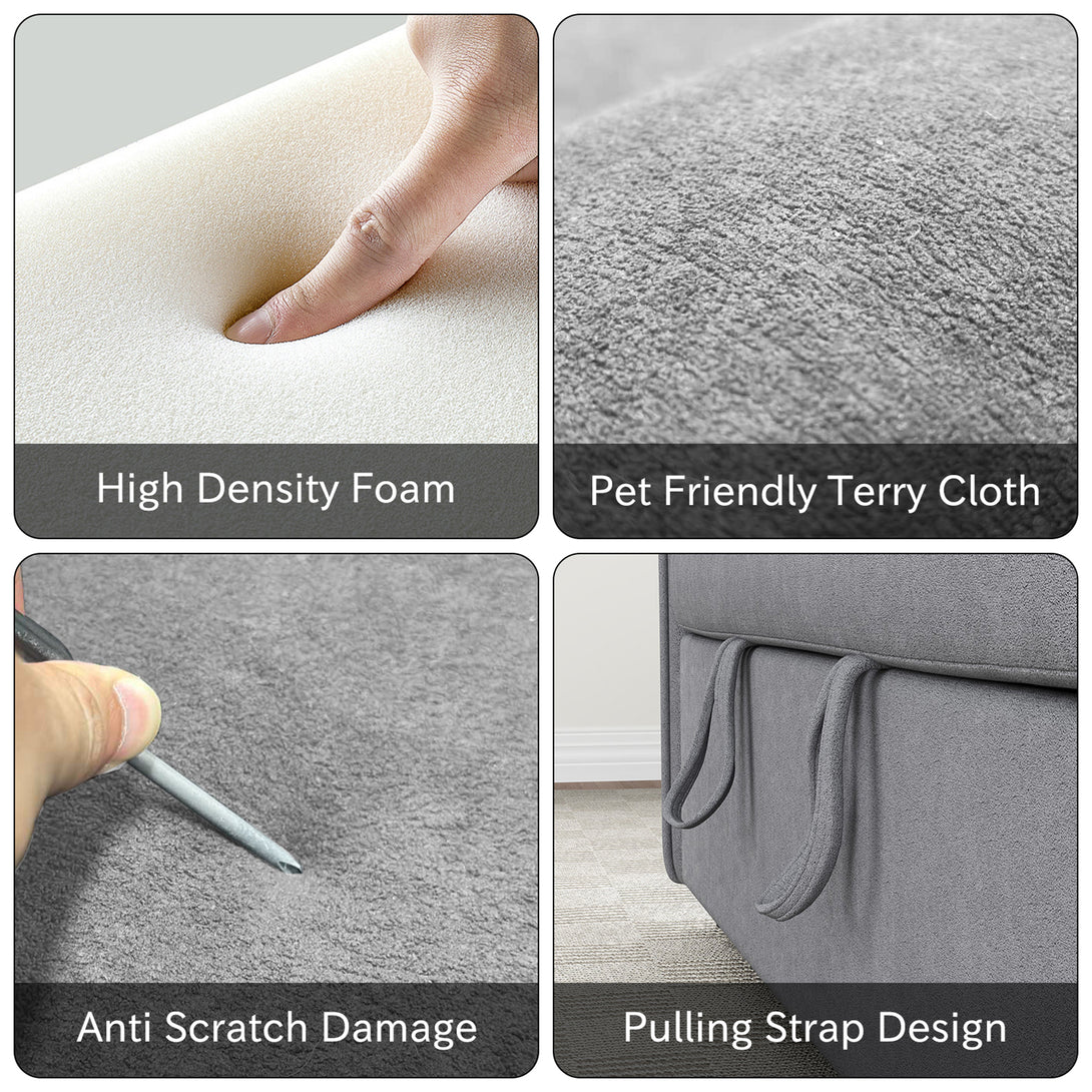The sofa bed perfectly blends modern style and versatility, making it easy to transform from a recliner (90 °) to a flatbed (180 °), upgrading your living space. Whether placed in the living room, bedroom, or home office, this sofa bed can provide luxurious comfort and practical functionality. Designed for durability, it features a heavy-duty metal frame and high-density foam pads for all day comfort. The pet-friendly terry cloth cover resists scratches, while the smooth pull-out conversion and ergonomic pulling straps make adjustments effortless. Add a touch of modern sophistication to your life.