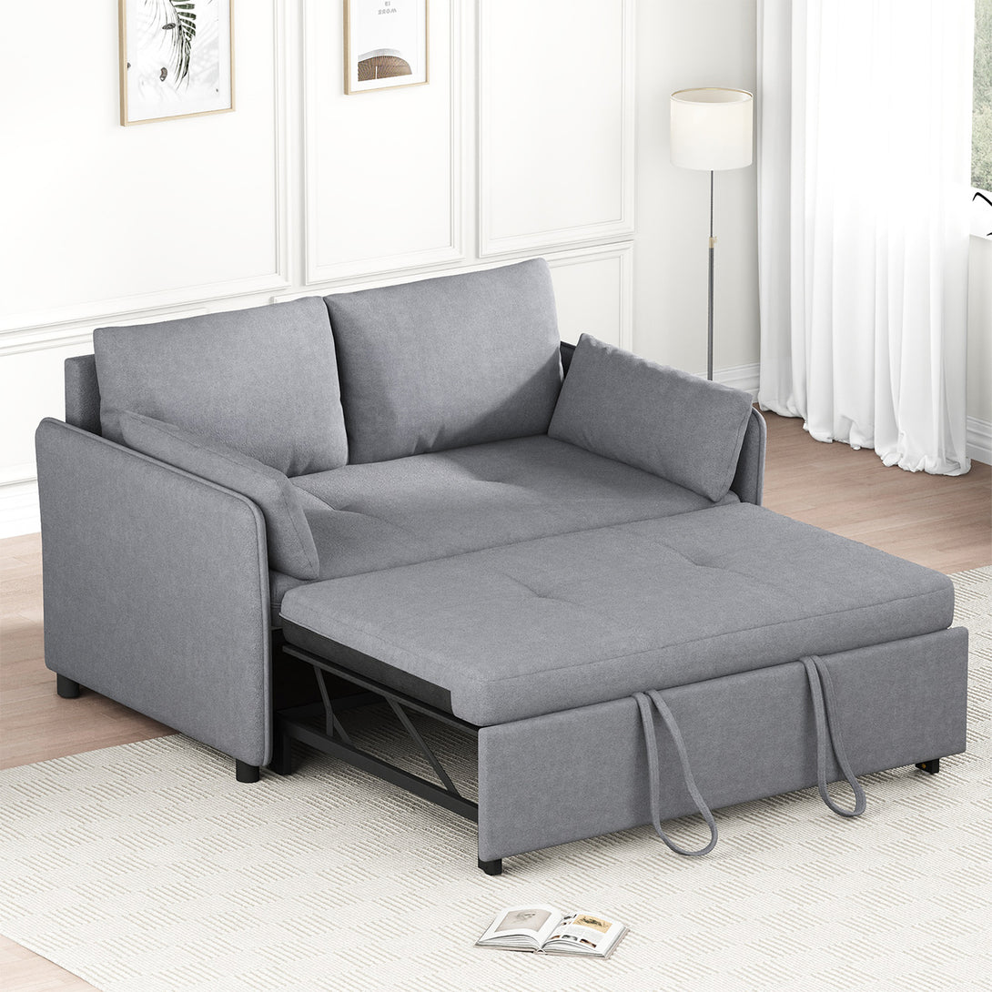 3 in 1 Convertible Sleeper Sofa Bed, 53" Folding Pull Out Couch with Adjustable Backrest, Futon Loveseat Couches with Side Pocket for Living Room, Grey