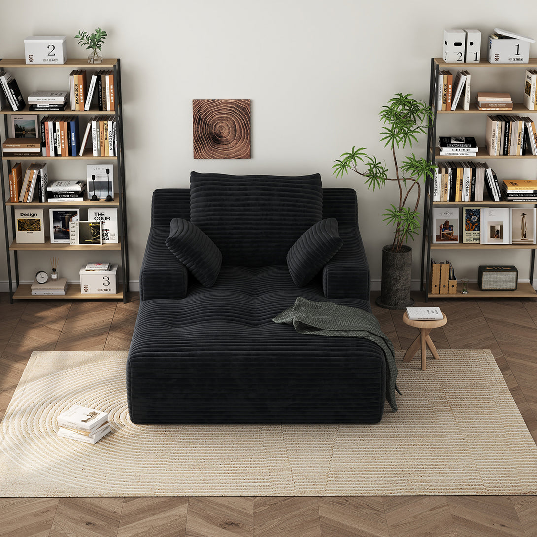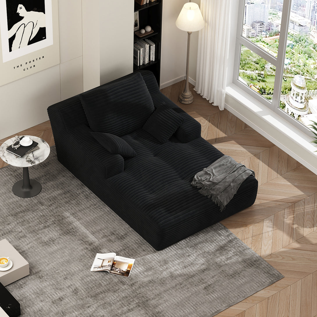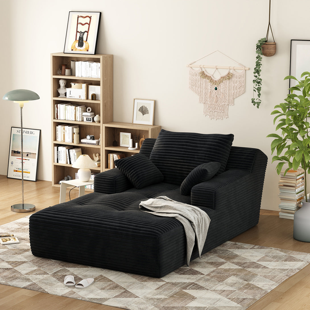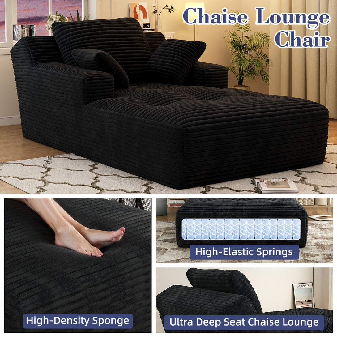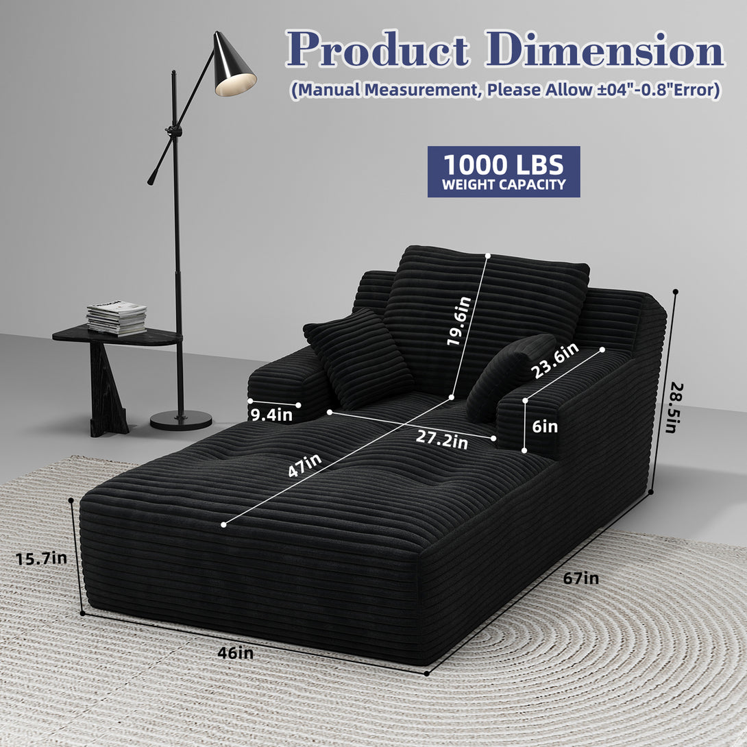 67'' Oversized Chaise Lounge Chair Indoor, Cloud Plush Corduroy Upholstered Sofa Bed, Modern Deep Seat Sofa with Back Cushion, Pillows, Cozy Sleeper Couch for Living Room, No Assembly Required, Black