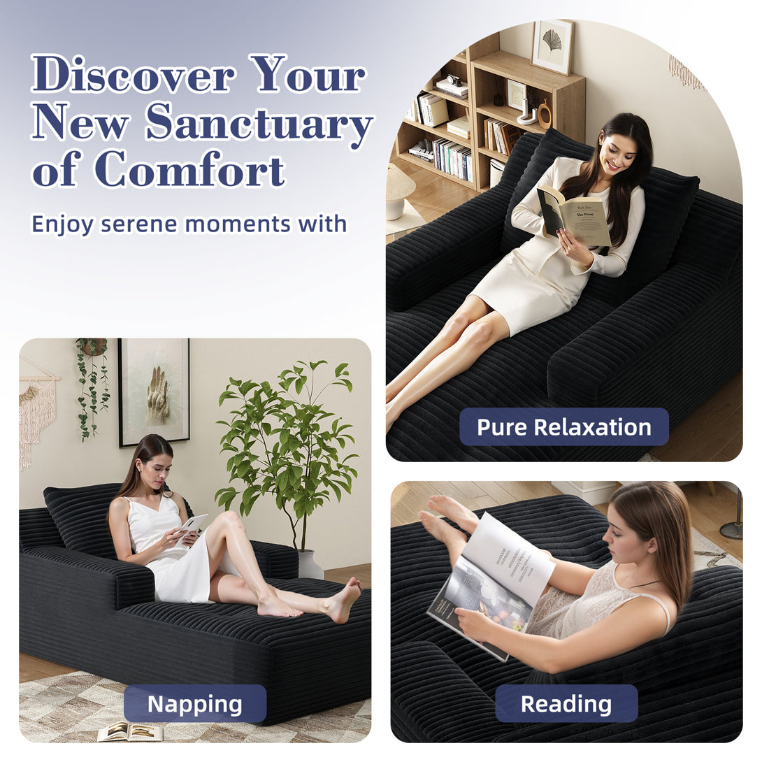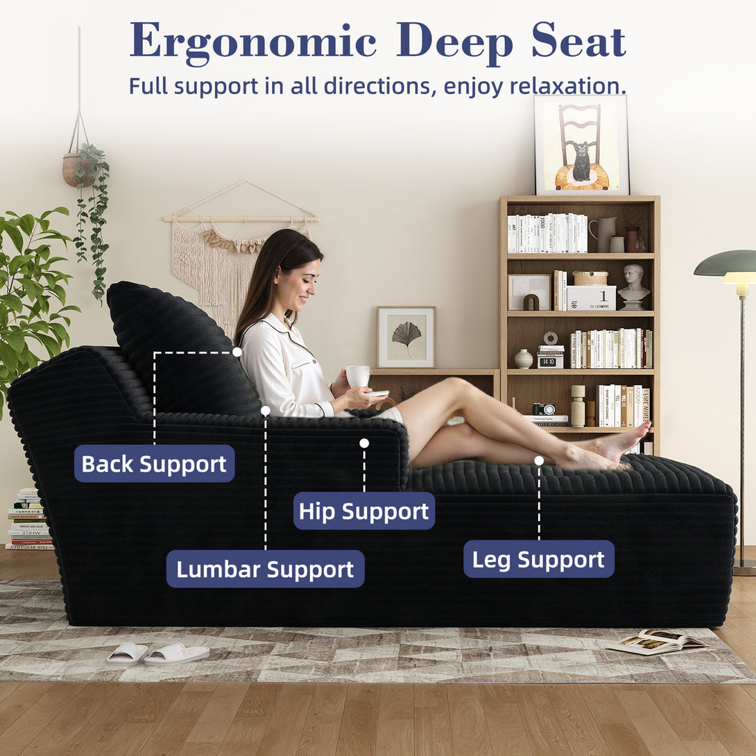 - Ultra-Comfortable Design: Experience unparalleled comfort with this oversized chaise lounge, featuring plush cloud velvet corduroy upholstery that feels like sitting on a cloud. The deep seat design ensures you can fully relax and unwind, making it perfect for long hours of lounging or napping.