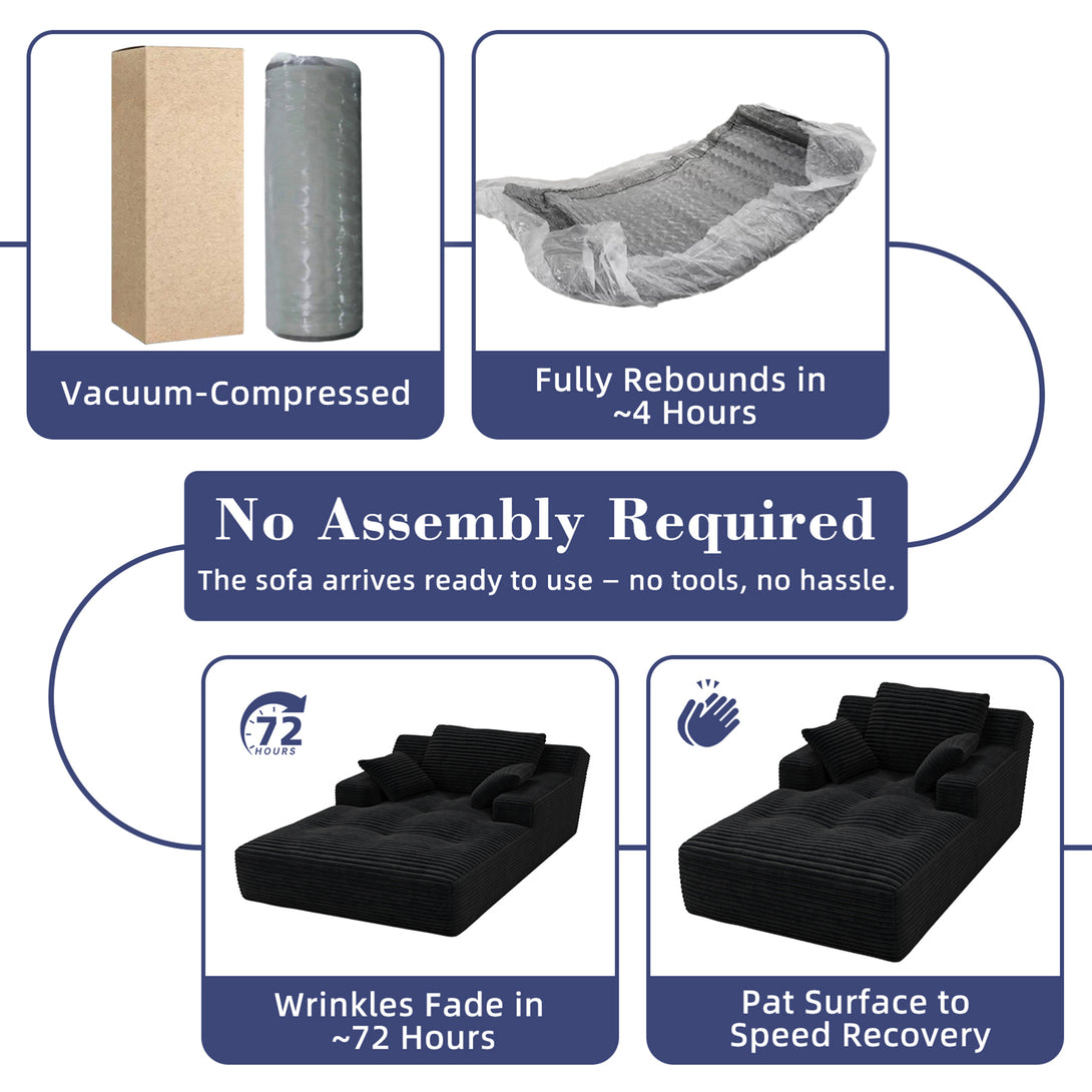 - No Assembly Required- Fluffs Up Quickly: This chaise lounge comes vacuum-packed and requires no tools or complicated setup. Just open the package, allow 24–48 hours for full expansion, and gently pat to restore its shape and fluffiness. Save time and effort with this ready-to-use chaise lounge – simply unbox and start enjoying its luxurious comfort immediately. Ideal for those who want a hassle-free setup process without compromising on quality or style.