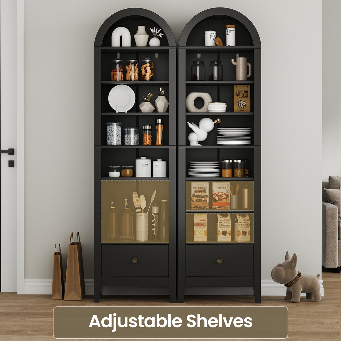 71" Arched Cabinet Tall Kitchen Pantry Cabinet, 8 Tiers Arched storage Cabinet with Doors and Shelves, Bookcase for Entryway, Hallway, Living Room