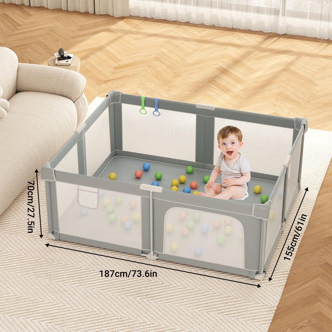 Baby Playpen, 70×61 In Play Yard, Foldable Large Playpens for Babies and Toddlers, with Mat and Carry Bag, Indoor & Outdoor Pack and Play, Oxford Fabric, Dark Gray
