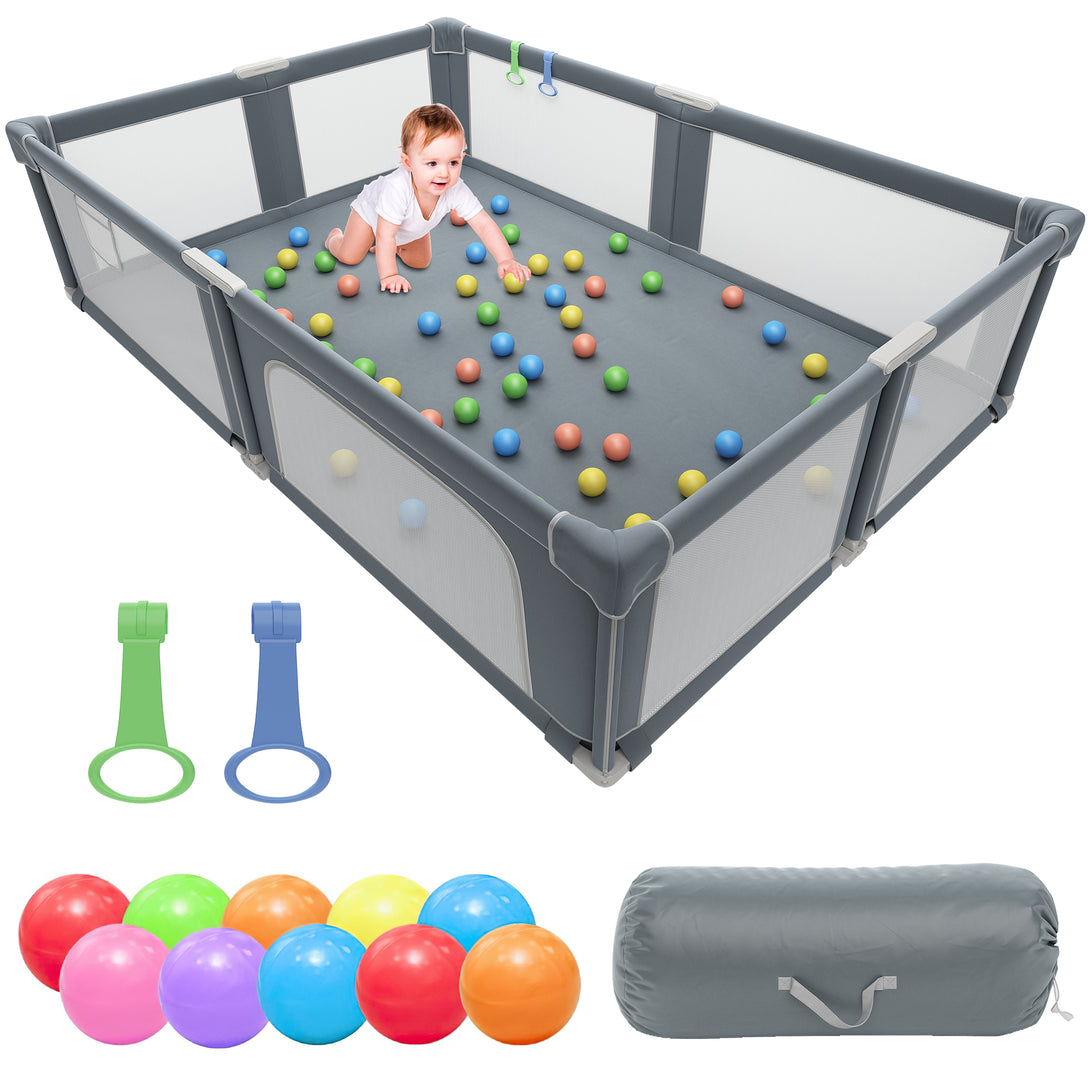 - ✨Spacious Baby Playpen with Mat: Our playpen offers a safe and ample space for babies or toddlers to play. It provides plenty of room for movement and play. The included playpen mat adds cushioning, creating a soft and cozy surface for crawling, rolling, and playtime.