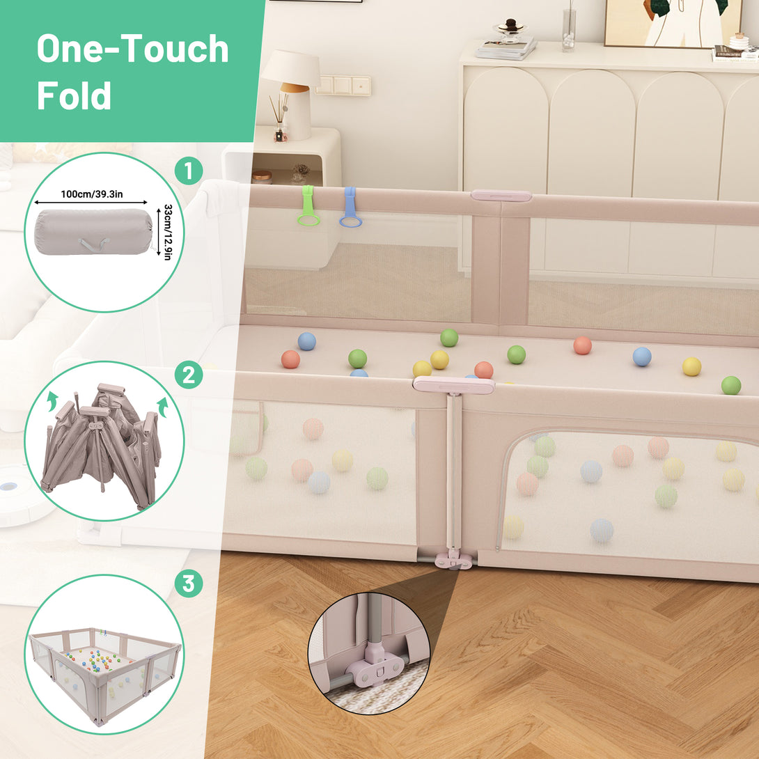 Baby Playpen, 70×61 In Play Yard, Foldable Large Playpens for Babies and Toddlers, with Mat and Carry Bag, Indoor & Outdoor Pack and Play, Oxford Fabric, Pink