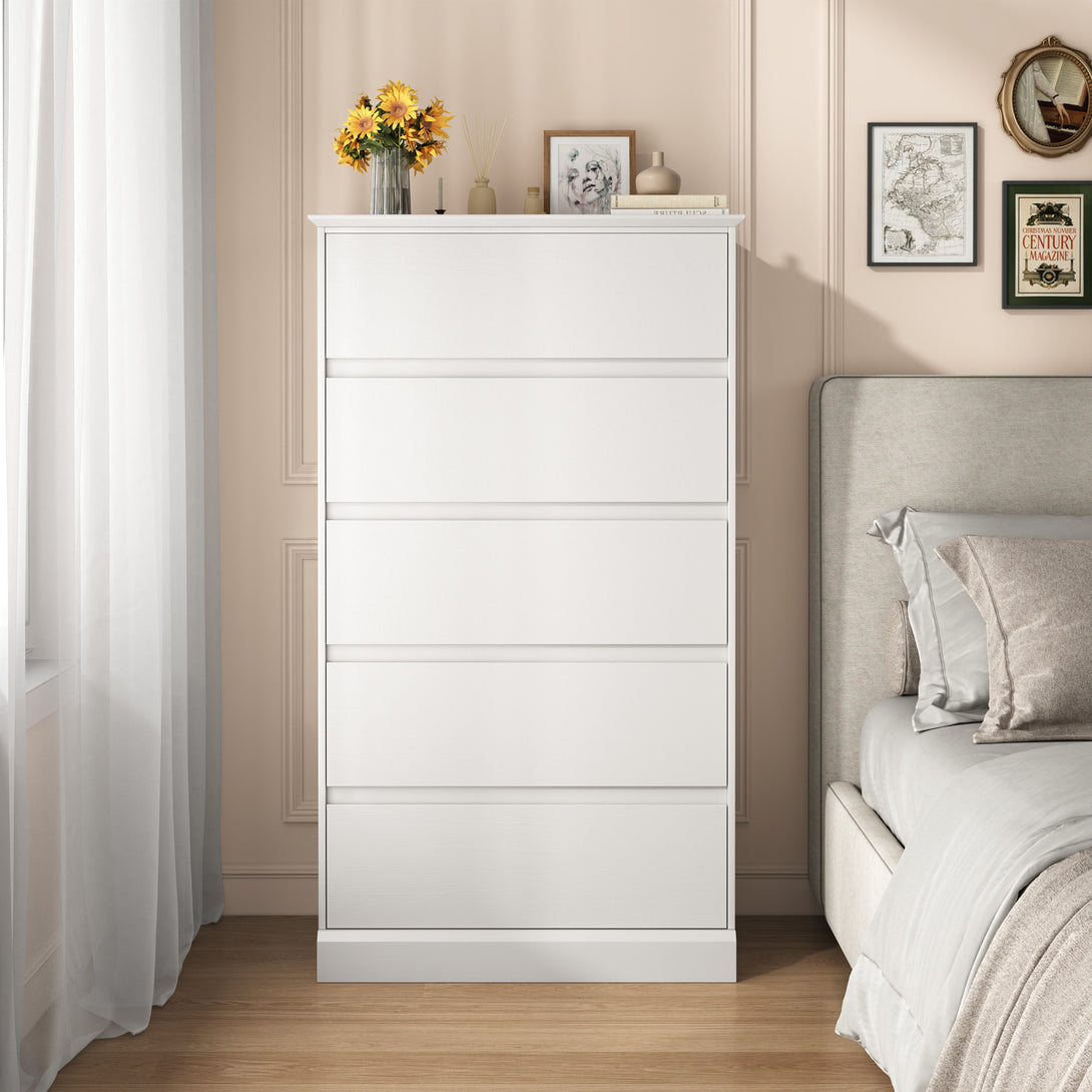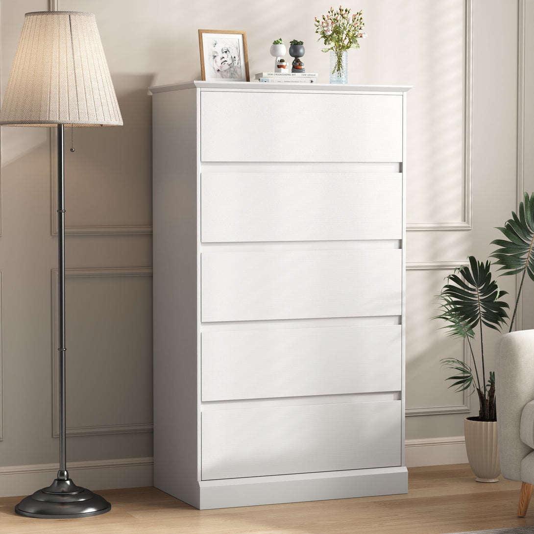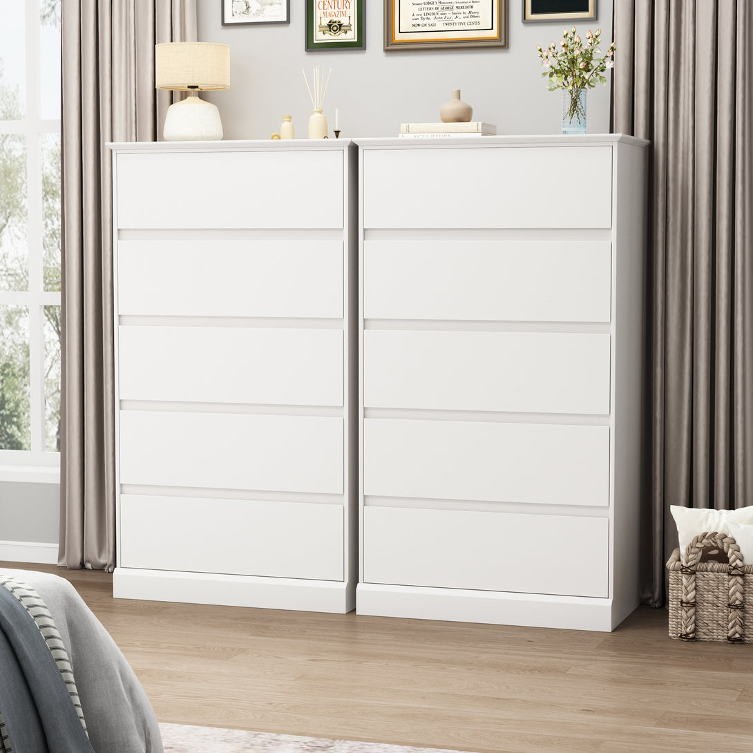 Bedroom Dresser 2 PCS White Dresser for Bedroom,5 Drawer Dresser Chest of Drawers for Living Room Dressing Room Entryway -2PCS