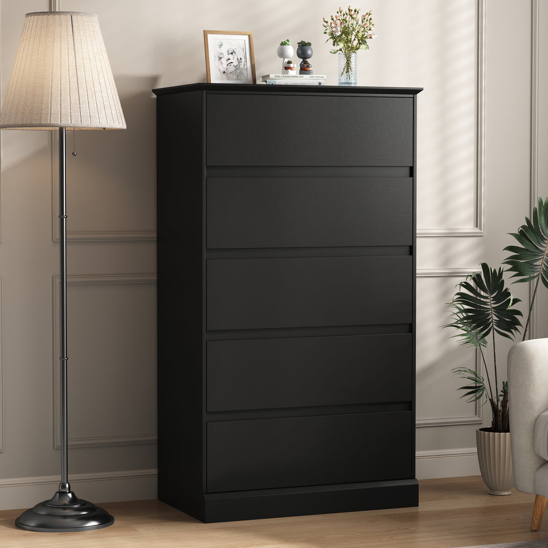 Bedroom Dresser Black, 5 Drawer Dresser Chest of Drawers for Living Room Dressing Room Entryway