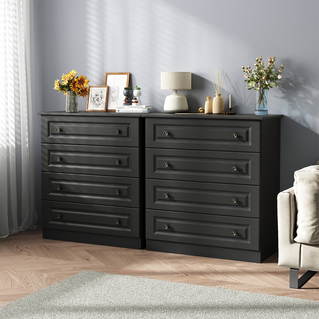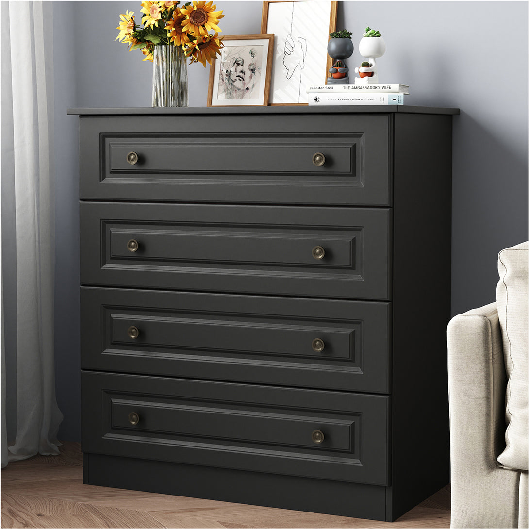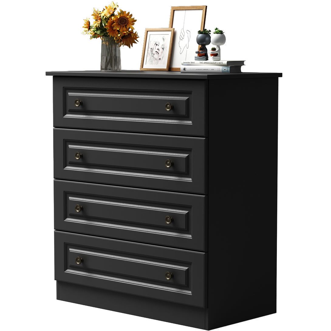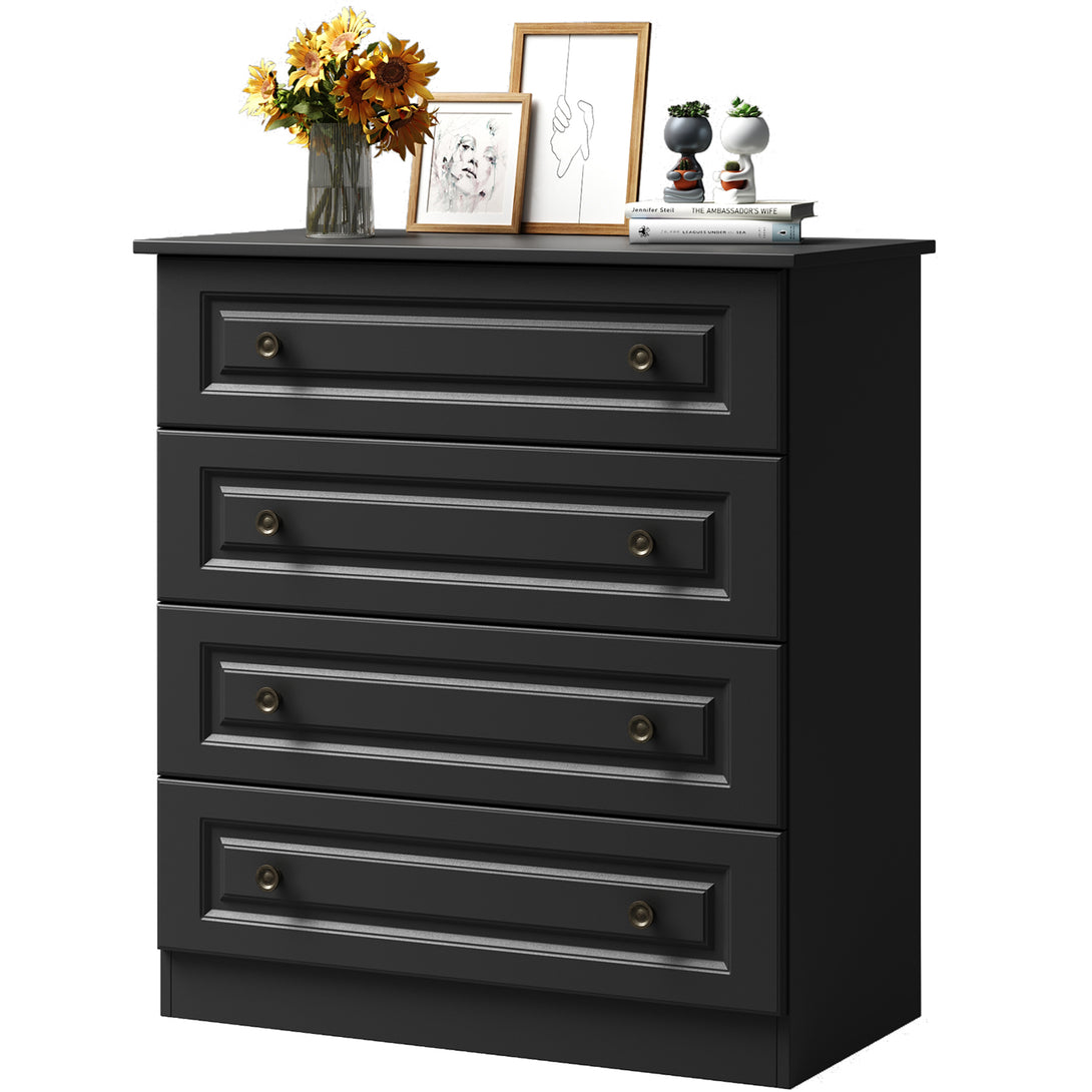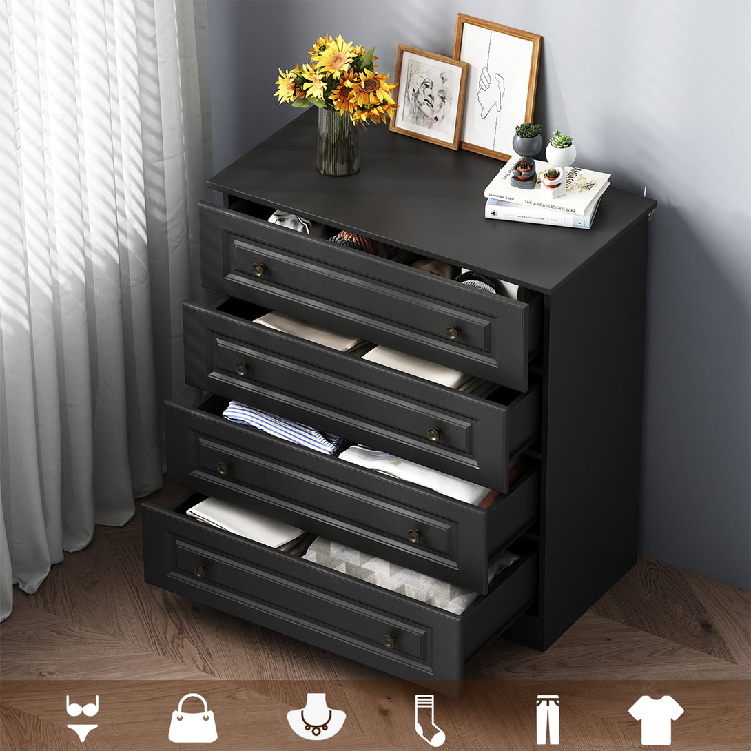【Ample and Versatile Storage Capacity】Four generously sized drawers offer abundant space to neatly organize a wide array of items. Whether it's clothing like shirts, pants, and sweaters, accessories such as hats, scarves, and socks, or personal care items including cosmetics and small handbags, this chest can accommodate them all, effectively helping you maintain a clutter - free living space.
