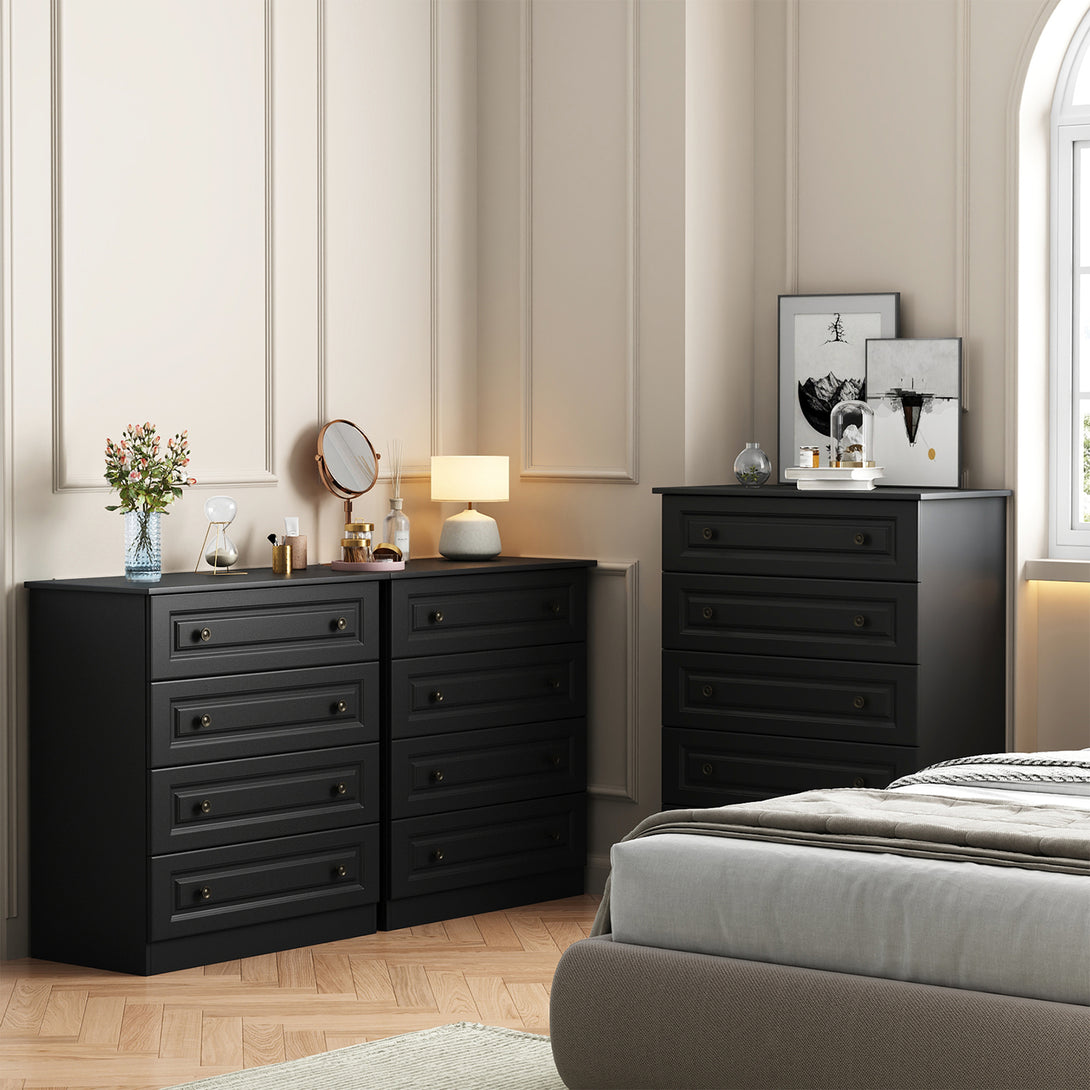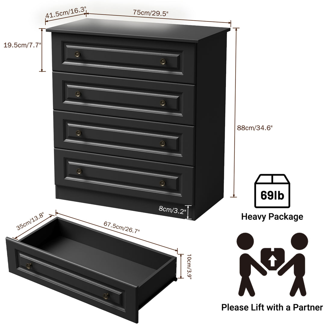 IDEALSOUL Dresser, Black Dresser Tall dresser with Large Storage Space, 4 Drawer Dresser for Bedroom, Hallway, Entryway