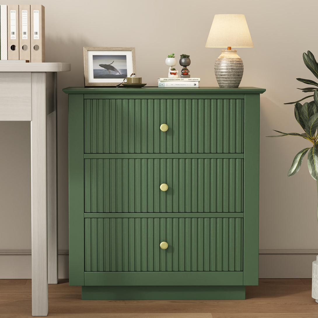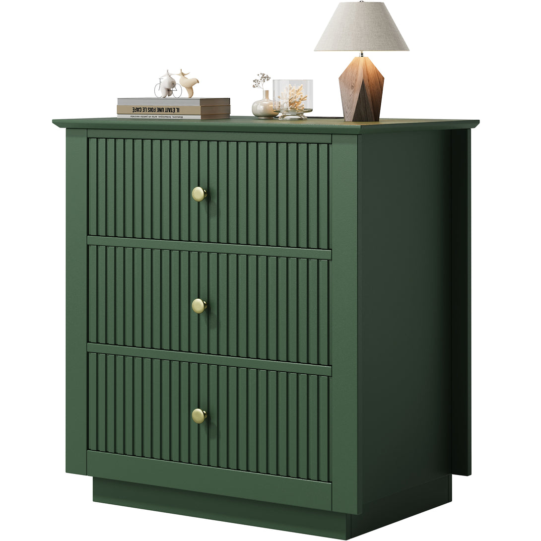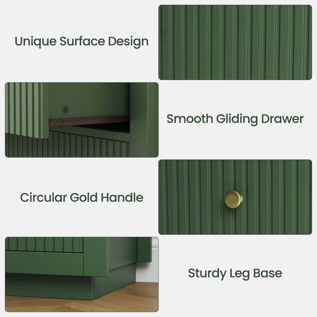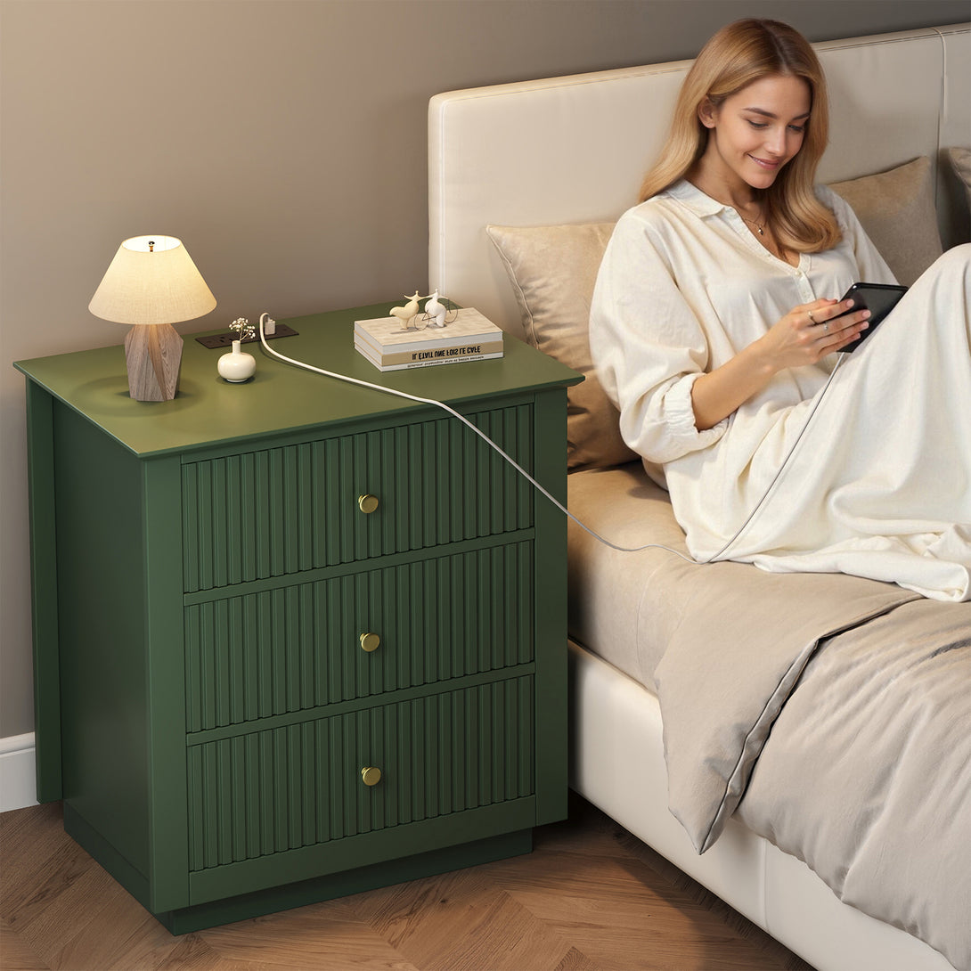 IDEALSOUL Nightstand Set of 2, 24" Wide End Table with Storage, Fluted Nightstand with USB Charging Station, Large 3 Drawers nightstand for Bedroom Living Room(2pc, Green)