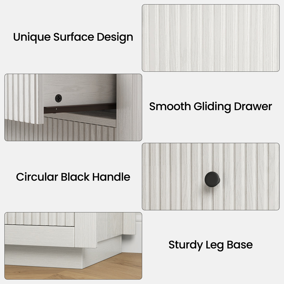 - Modern style bedside table: Our grooved bedside table features minimalist curved contours and drawers with unique wavy panels, perfectly blending modern aesthetics and functional design. This bedside table can not only be used as a bedside table, but also as a coffee table in the living room.