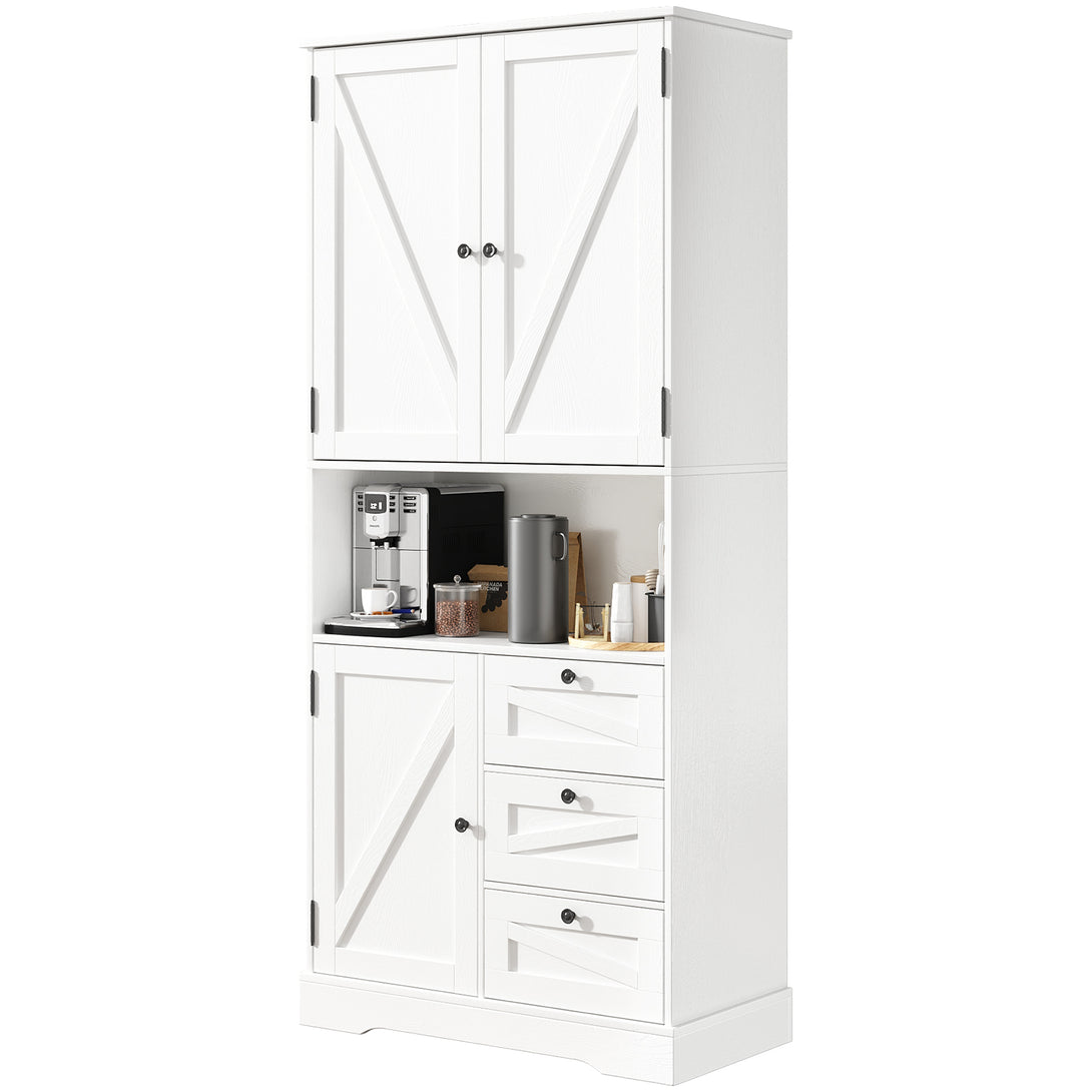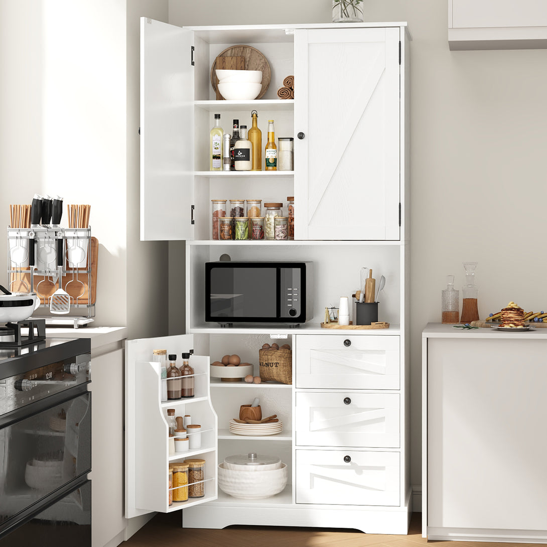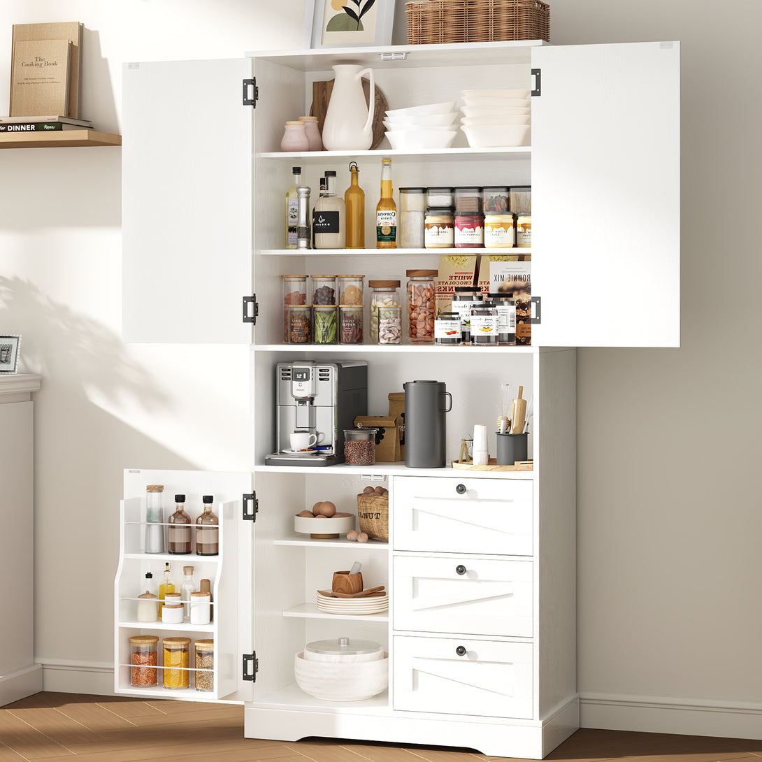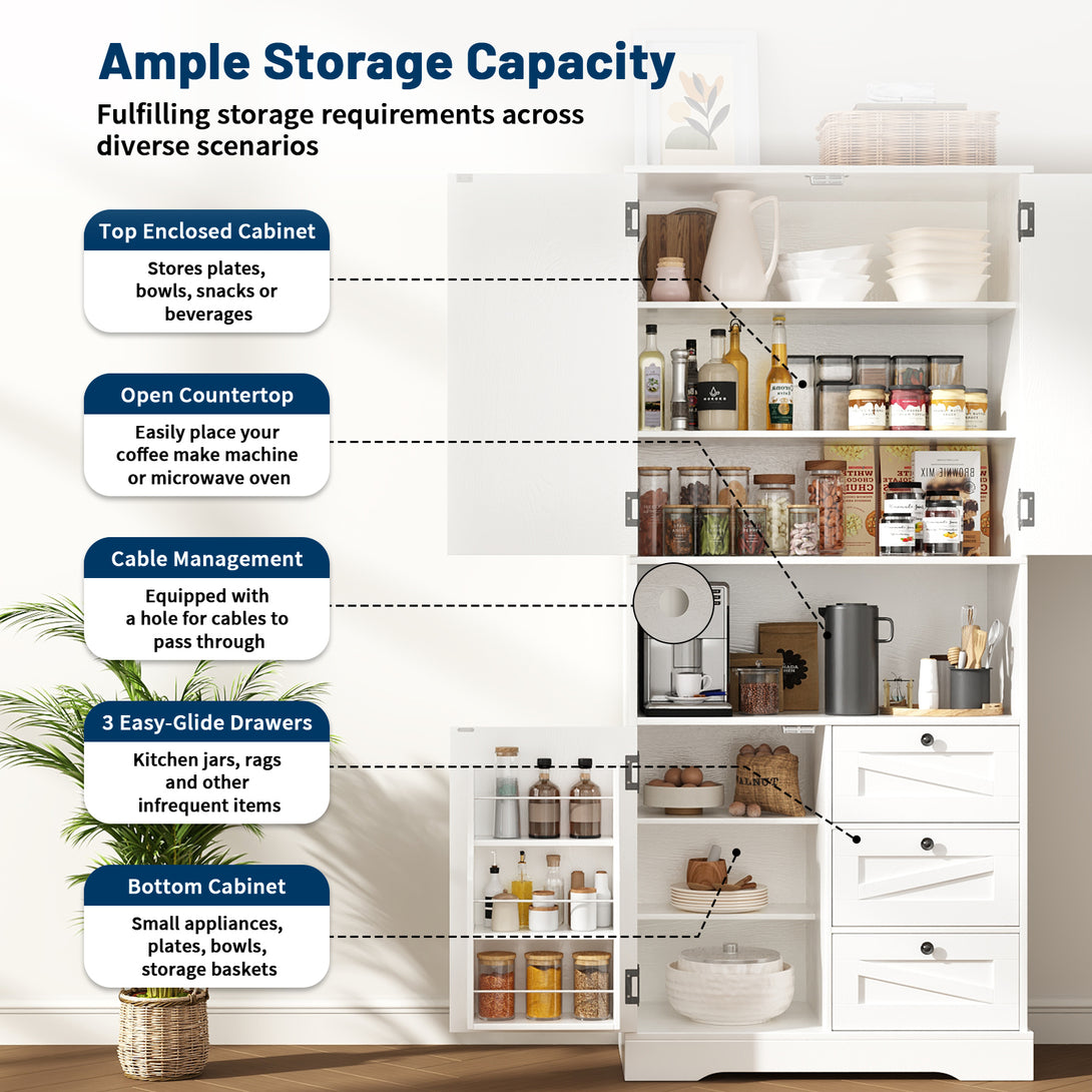 Pantry Storage Cabinet, White Kitchen Storage Cabinet with Doors and Shelves, 72”H Pastoral Style Wooden Pantry Cabinet for Kitchen, Living Room, Bathroom