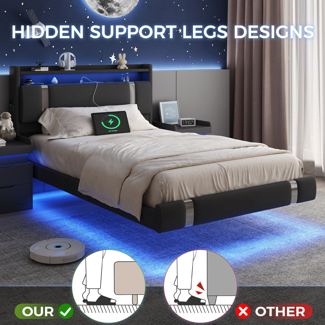 - FLUID FLOATING ILLUSION: Our innovative design creates the visual effect of the bed floating on the floor, infusing your space with modern, space-saving appeal that complements any full-size bedding.