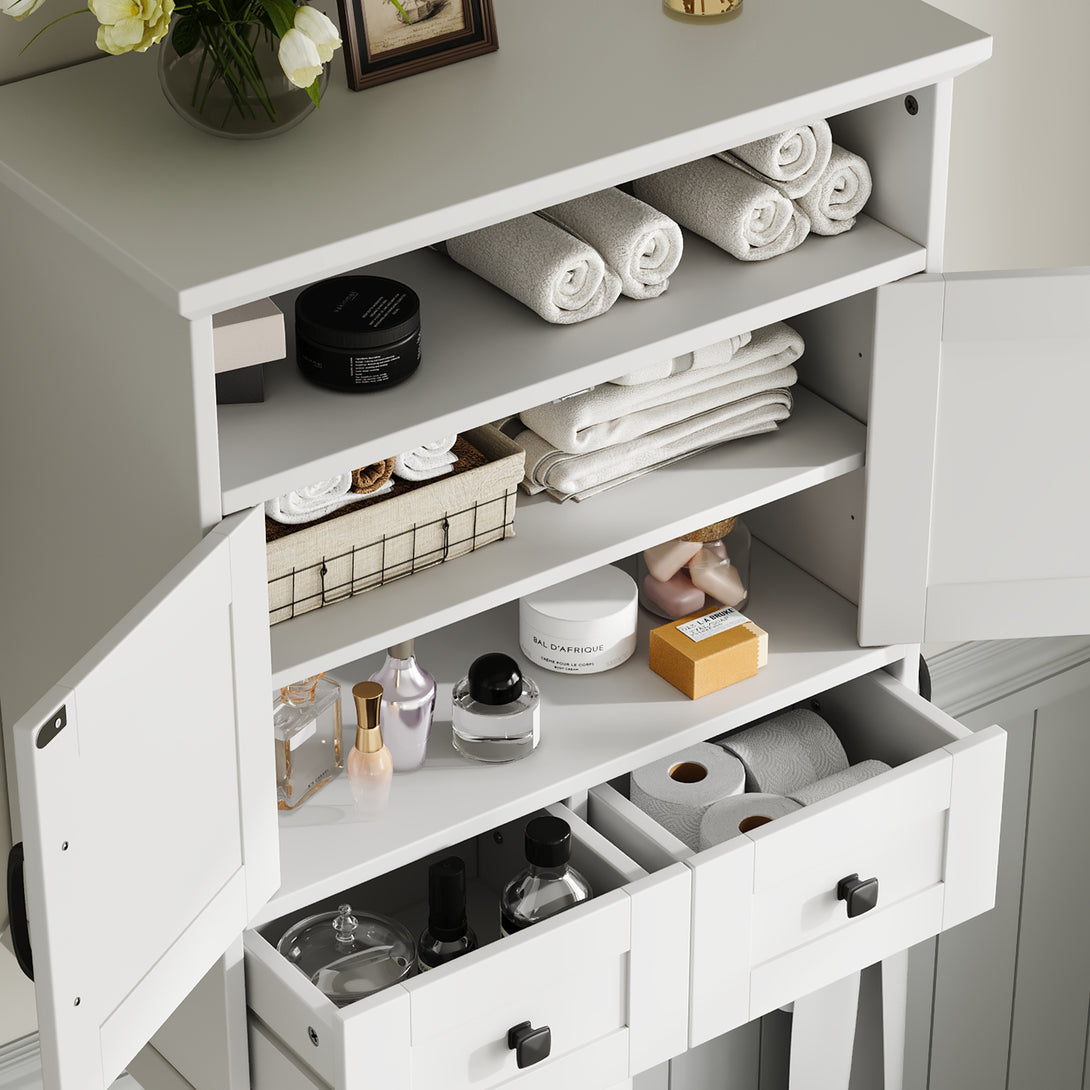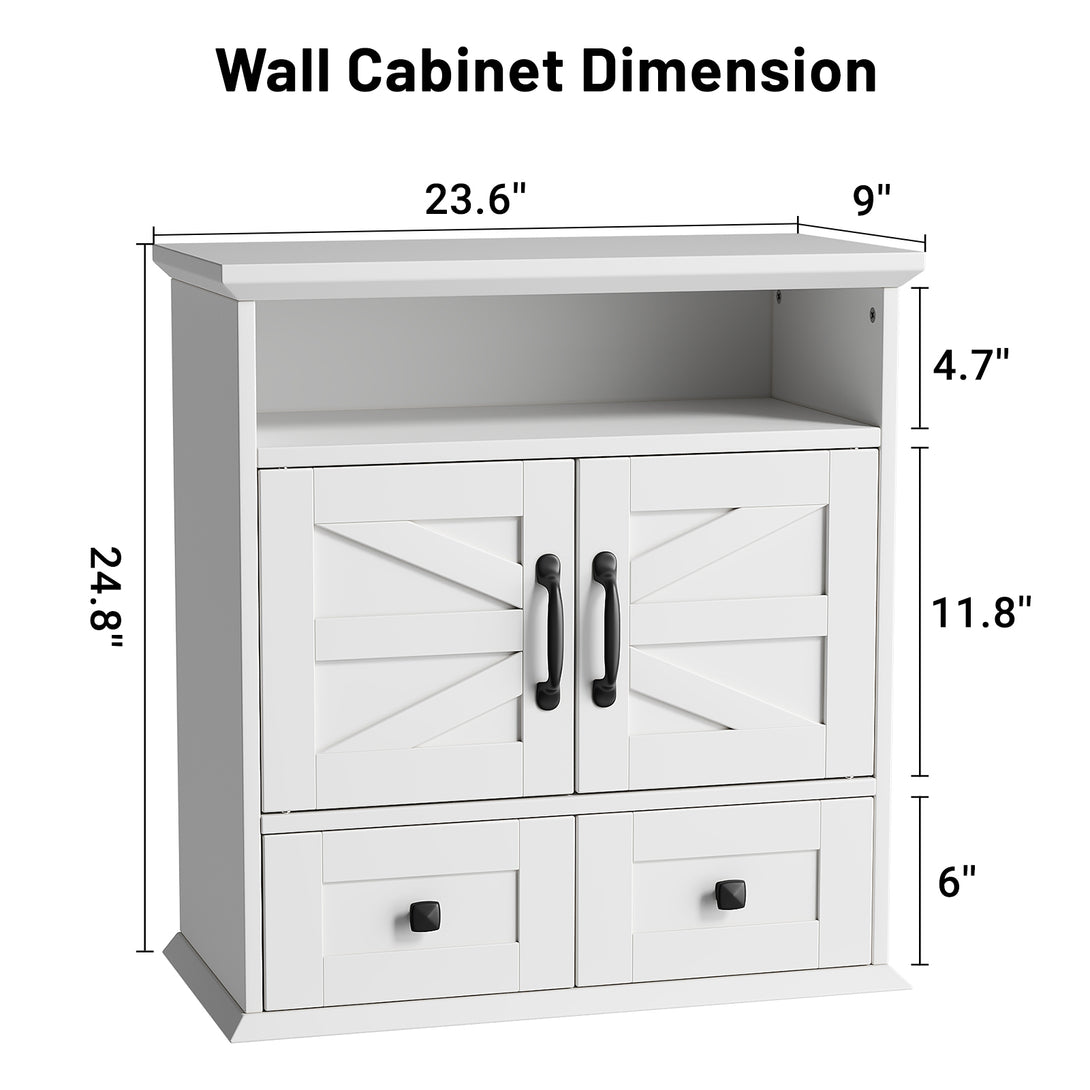 IDEALSOUL Wall Bathroom Cabinet, Bathroom Medicine Cabinet with Double Door Wall,Two Drawers, Adjustable Shelves, White