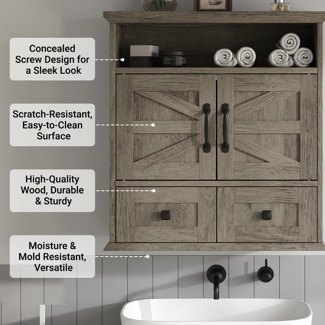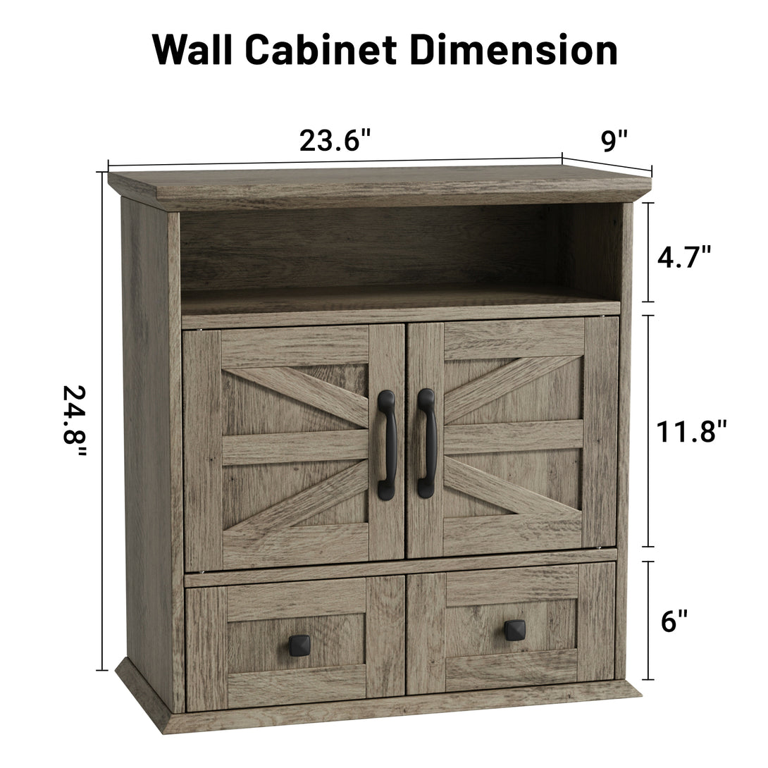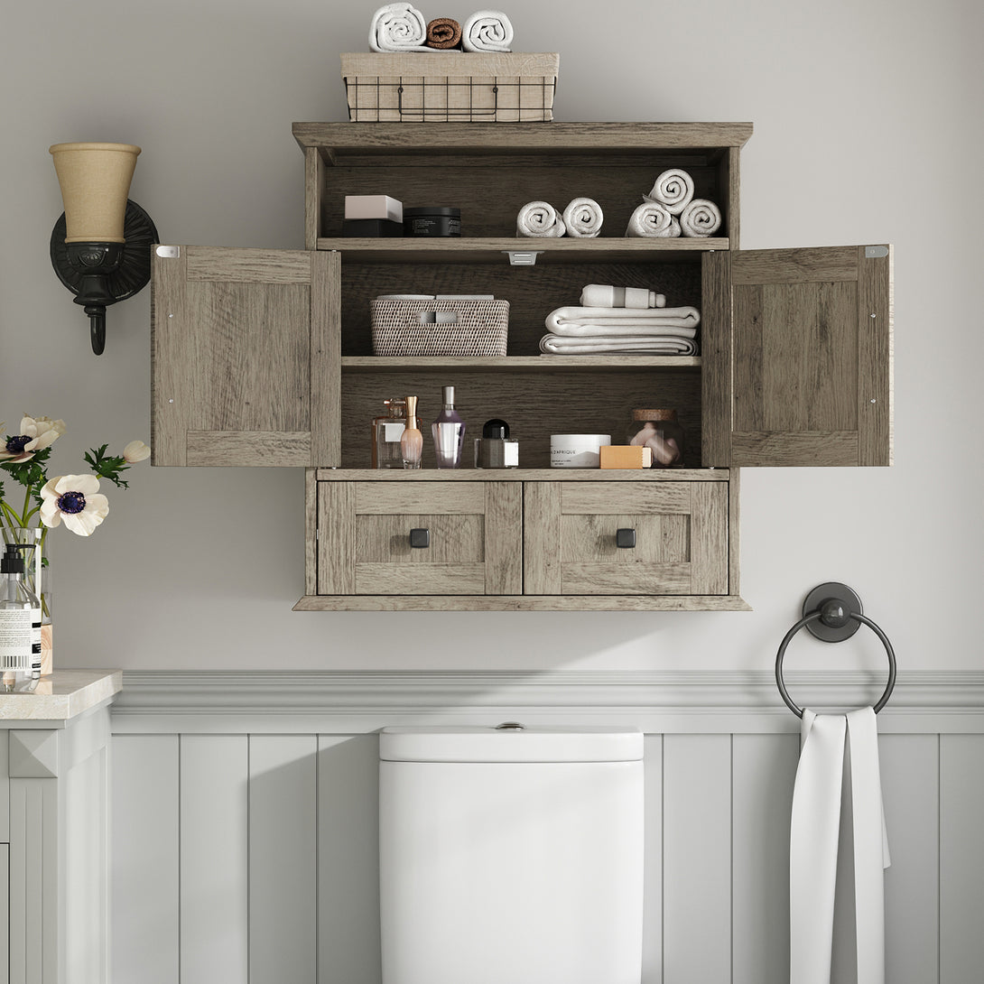 IDEALSOUL Wall Bathroom Storage, Bathroom Medicine Cabinet with Double Door Wall, Two Drawers, Adjustable Shelves, Gray