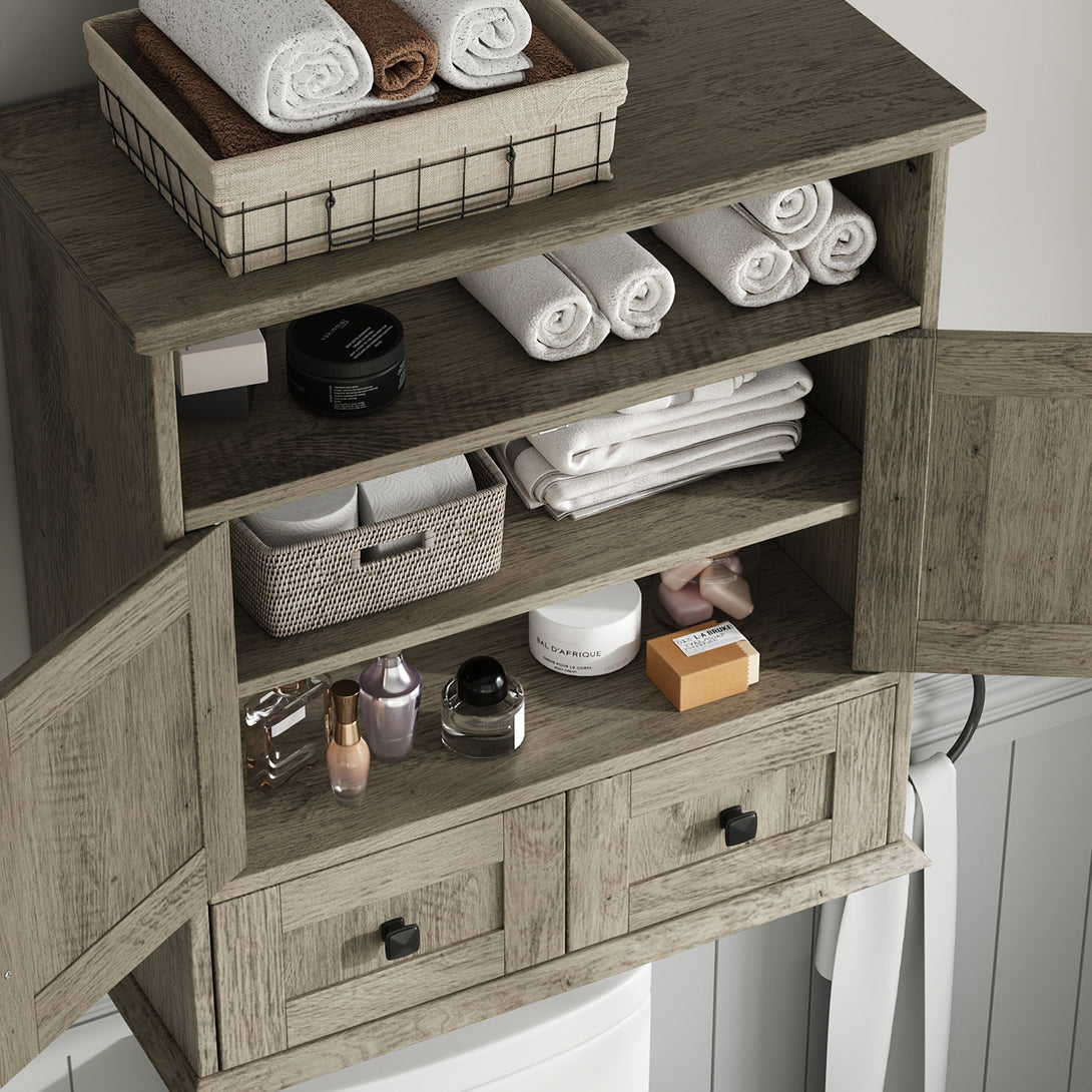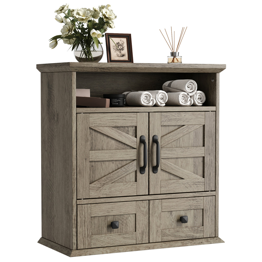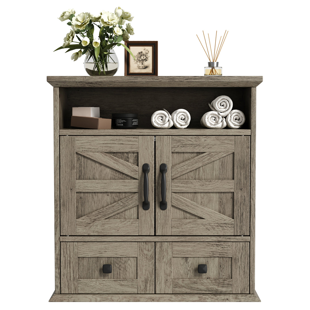 IDEALSOUL Wall Bathroom Storage, Bathroom Medicine Cabinet with Double Door Wall, Two Drawers, Adjustable Shelves, Gray