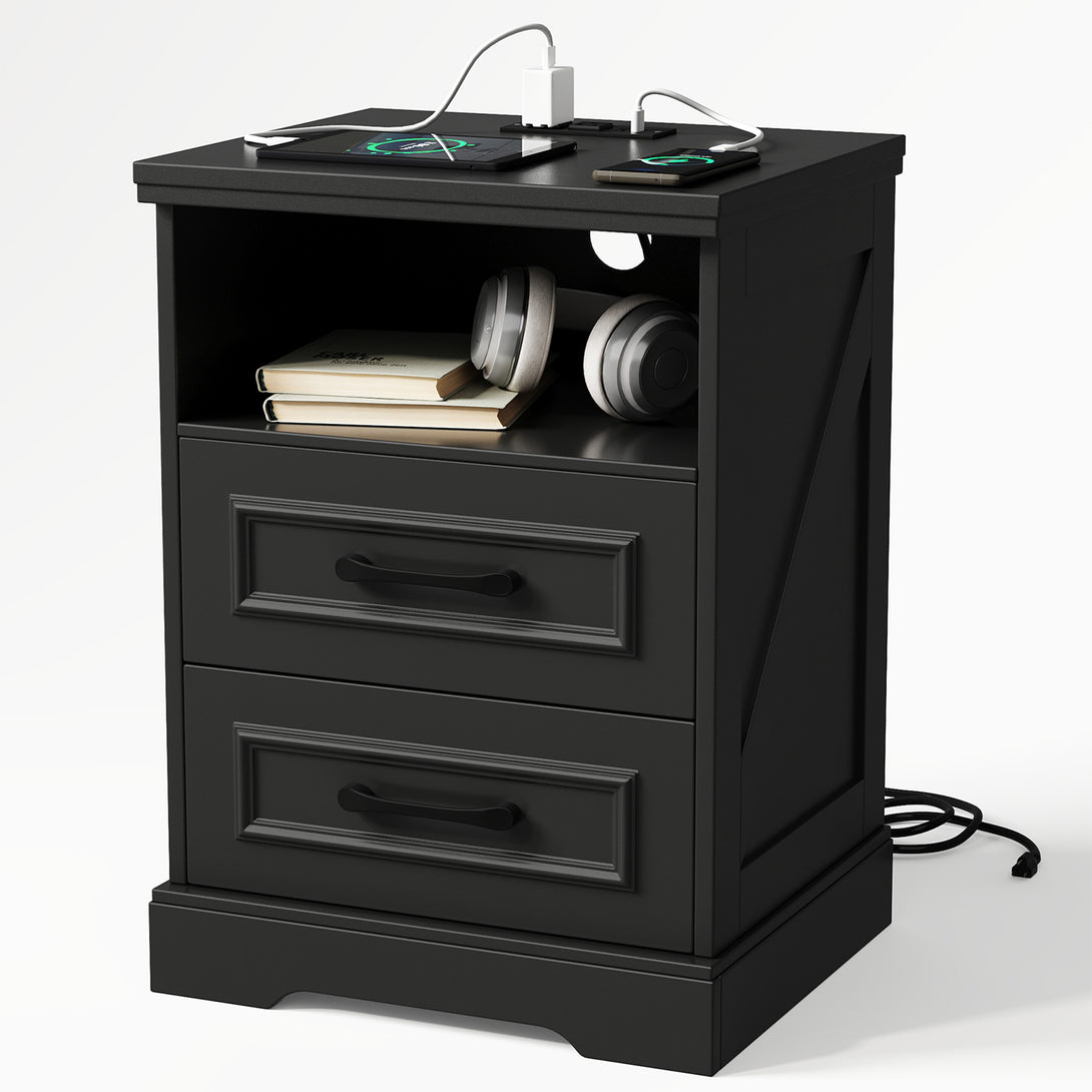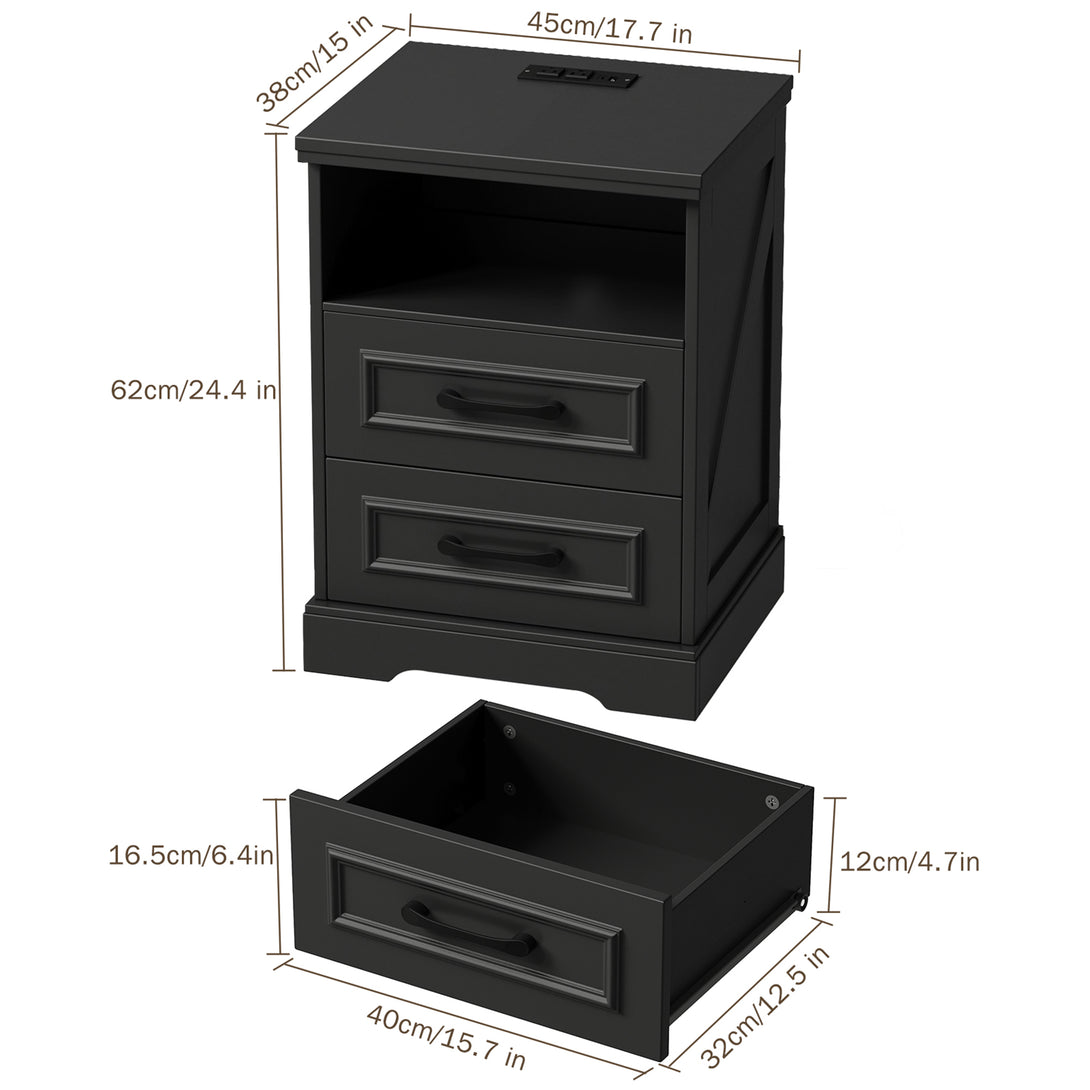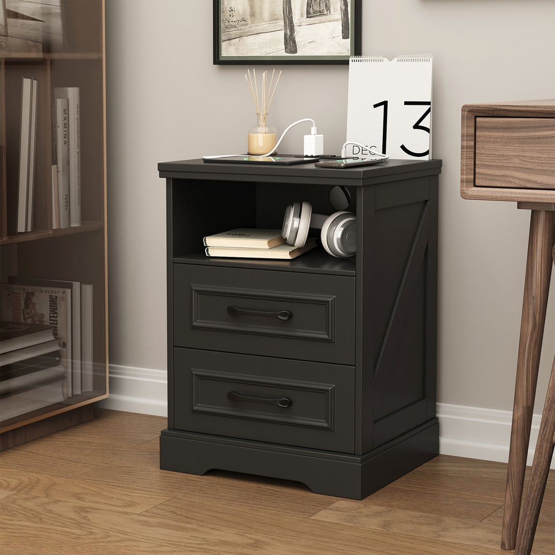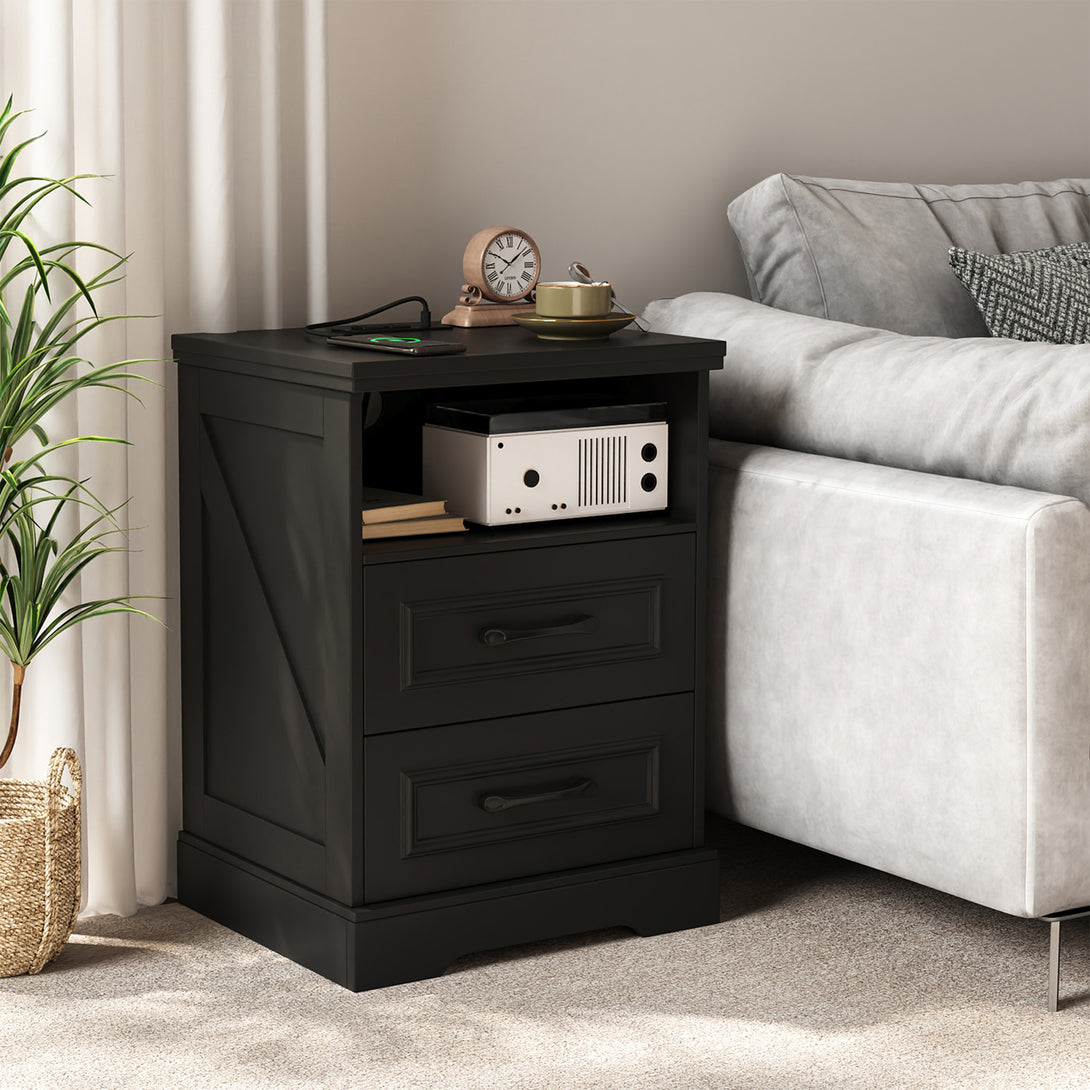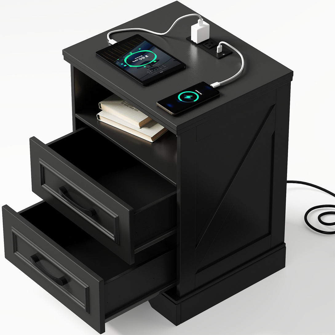 Nightstand with Charging Station, Farmhouse Nightstands with 2 Drawers Storage Side Table Bedside Cabinet for Bedroom Living Room