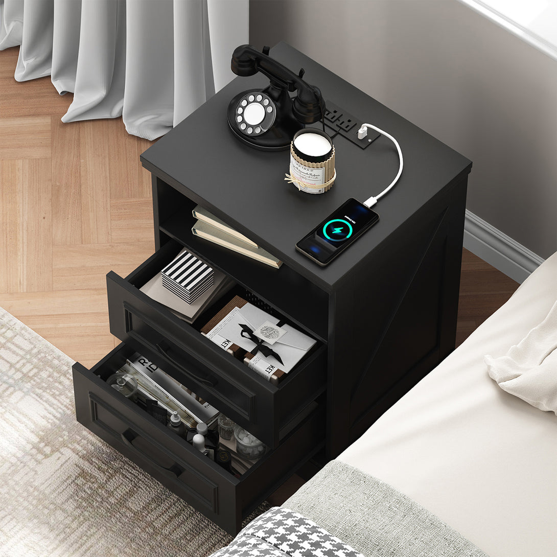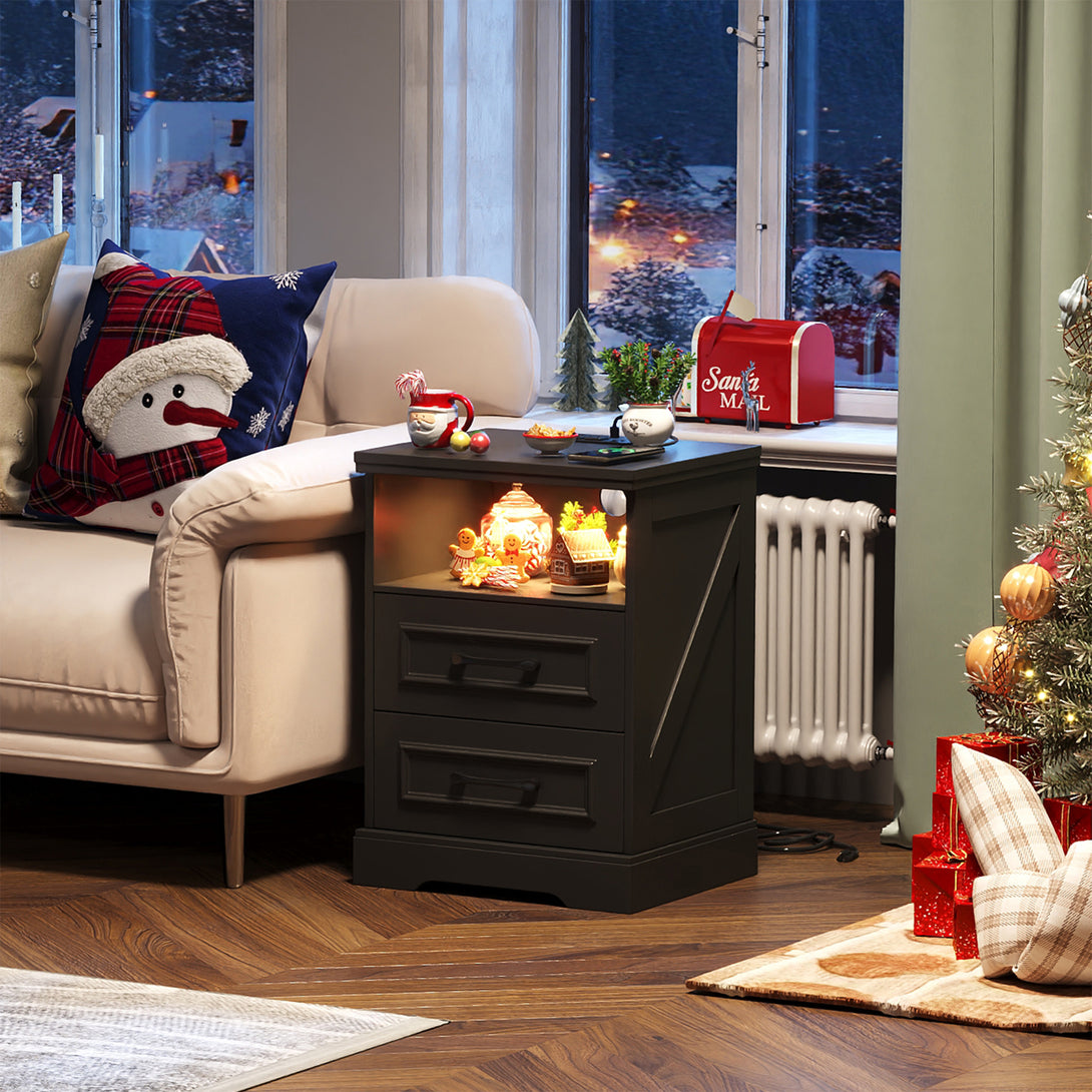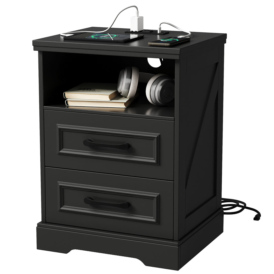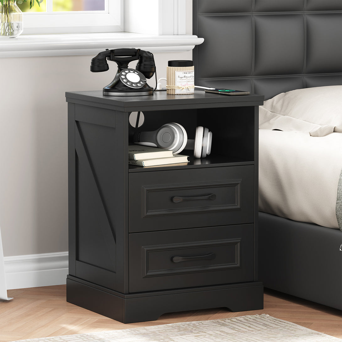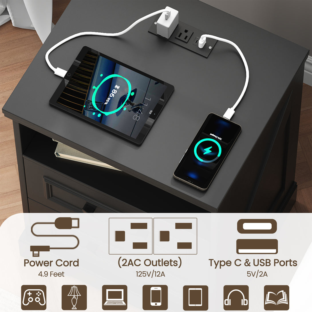 Nightstand with Charging Station, Farmhouse Nightstands with 2 Drawers Storage Side Table Bedside Cabinet for Bedroom Living Room